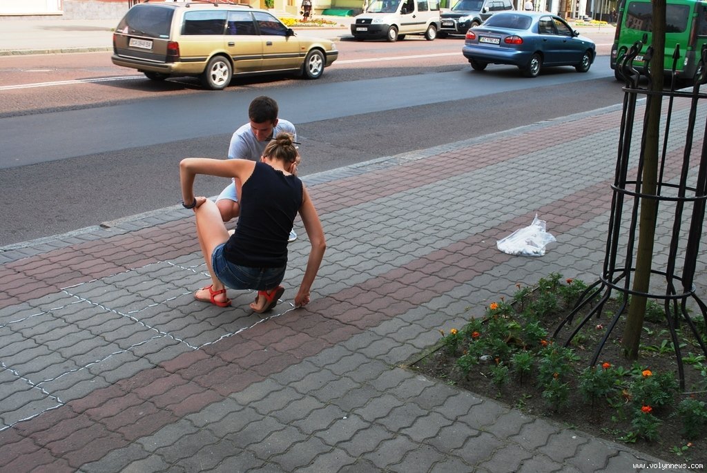Малюнок простягається через тротуари, не переривається на проїжджій частині і закінчується біля луцької гімназії № 4. За задумкою організаторів, охочі можуть доскакати від центру міста до кафе «Друзі forever».