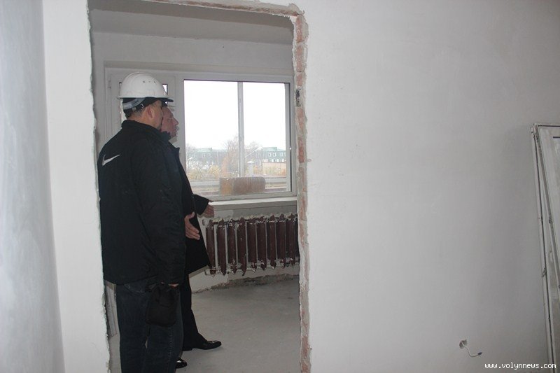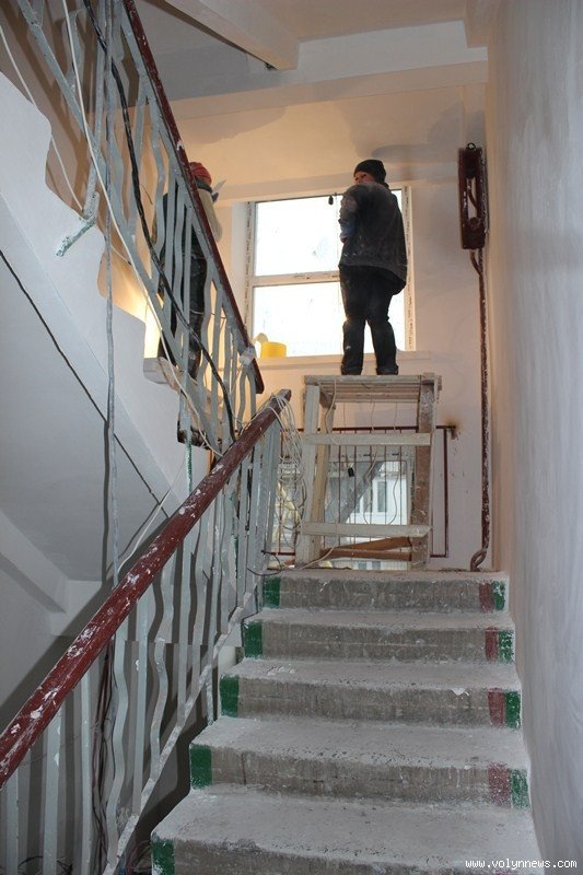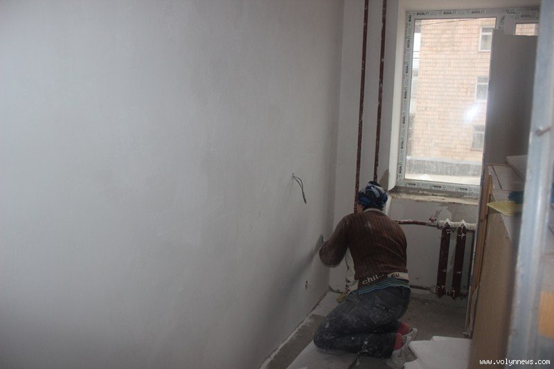 За словами Чорнухи, будівельники «Луцьксантехмонтажу» почали працювати у будинку з 26 вересня. «Це був етап відтворення будівельних робіт. Стіни, перегородки, ми повністю вирізали цю середню вставку. Ми працювали в дві зміни, а потім, коли вже пішли оздоблювальні роботи – працюєм продовжений день», - додав він.