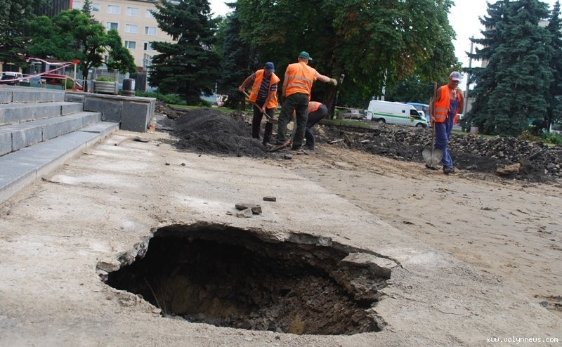 Перший етап ремонтних робіт включає повну реконструкцію площі від драмтеатру до пам’ятника Лесі Українки, наступний етап – до Свято-Троїцького собору.