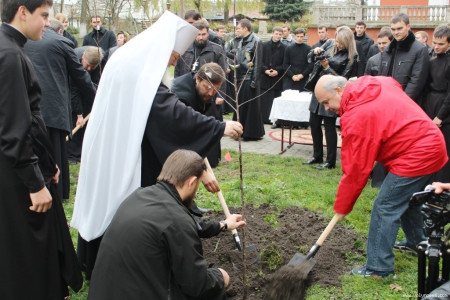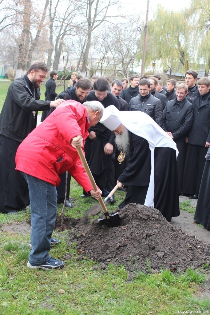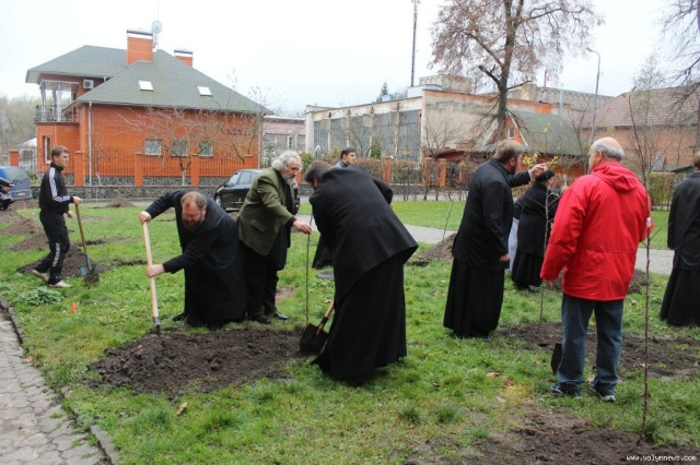 Плодовий сад поблизу Волинської духовної семінарії УПЦ висадили викладачі та семінаристи спільно з митрополитом Луцьким та Волинським Ніфонтом та головою Волинської обласної ради Володимиром Войтовичем.