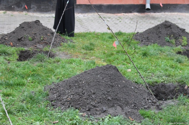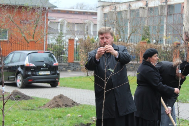 Перед початком заходу, що відбувся 11 листопада, висадження дерев благословив молитвою владика Ніфонт. Саджанці окропили свяченою водою.