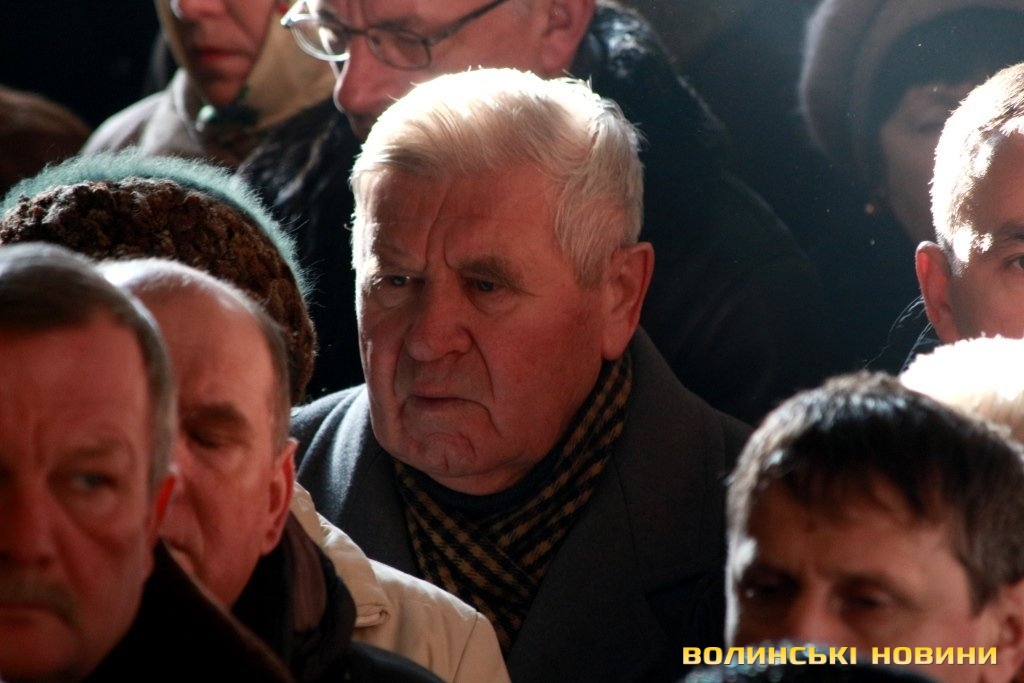 Луцький міський голова Микола Романюк привітав присутніх із величним святом, побажавши їм мирного неба. Він зауважив, що лише торік кожен українець почав замислюватися над словом «мир», і нині усі просять Бога, щоб він якнайшвидше настав на українській землі. Подякувавши за підтримку українських вояків, міський голова визнав – якби не народ, Україна не мала б такої армії, як сьогодні.