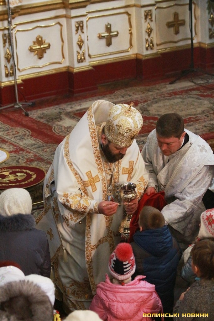 Митрополит Луцький та Волинський Михаїл привітав вірян із Днем народження Ісуса Христа, зауваживши, що у таке свято у храм потрібно приносити подарунки, а найкращим подарунком від християнина є чисте та щире серце, безгрішна душа, добрі помисли. Прийшовши з цими дарами до бога люди виправдовують своє життя на землі із вдячністю до того, що Бог прийшов у цей світ.
