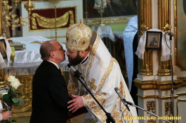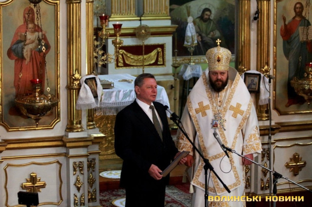 Голова Волинської облдержадміністрації Володимир Гунчик висловив сподівання, що цього року на українську землю прийде спокій та єднання та впевненість у тому, що цього року ми зможемо закрити трагічну сторінку в житті України. Він подякував усім, хто торік та нині робив благі справи для того, щоб мир прийшов на українську землю. Голова ОДА, вручивши вітальний адрес Михаїлу, подякував церкві за допомогу, яку та надає військовим, родинам загиблих та тих, хто захищає свободу та незалежність України на сході.