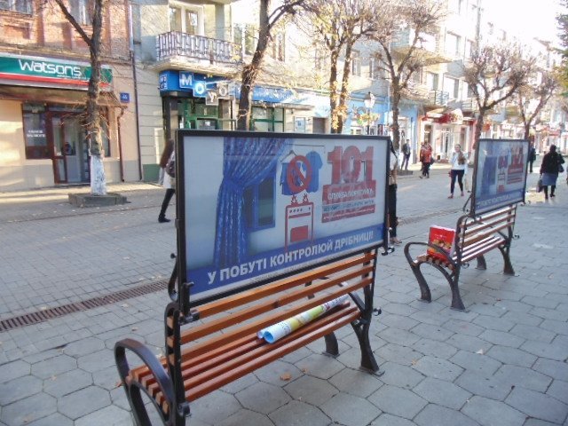 За сприяння Луцької міської ради в обласному центрі на пішохідній вулиці – Лесі Українки, постери соціальної реклами з правил пожежної безпеки в побуті розміщені на спеціальних площинах.