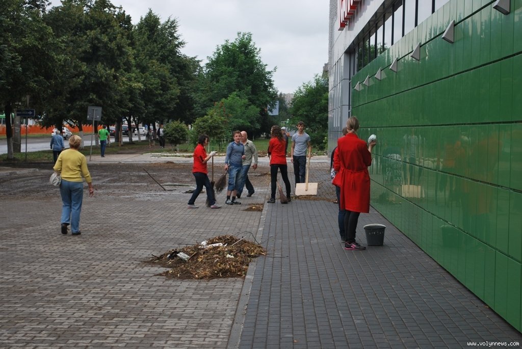 Злива у Луцьку внесла корективи в роботу багатьох торгових закладів. Особливо постраждали ТЦ «Ювант» та супермаркет «Салют», що на Проспекті Соборності.