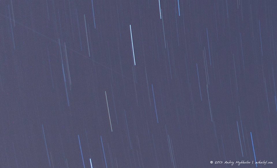 Знаєш є такий вираз "Горбатого могила справить" або "йому сци в очі а він каже дощ іде..." на твоїх НЕЯКІСНИХ фото без путньої системи стабілізації нема метеоритів !!! Є літаки є так звані "зорі" а те, що ти називаєш метеоритами це СУПУТНИКИ!!! Якщо тобі важко почитати спец літературу то піжкажу метеорити мають різний екоофіцієнт світла в залежності від наближення та входження в атмосферу.... подивись ще раз на свої шедеври та стукнись об стіну автор.....