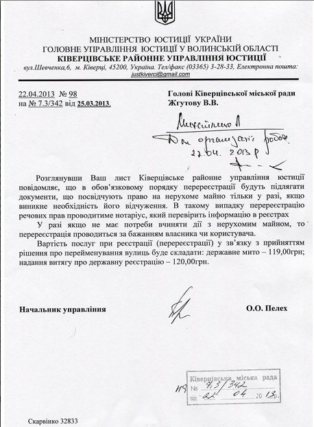 Скільки ківерчани платитимуть за перейменування вулиць. ДОКУМЕНТИ