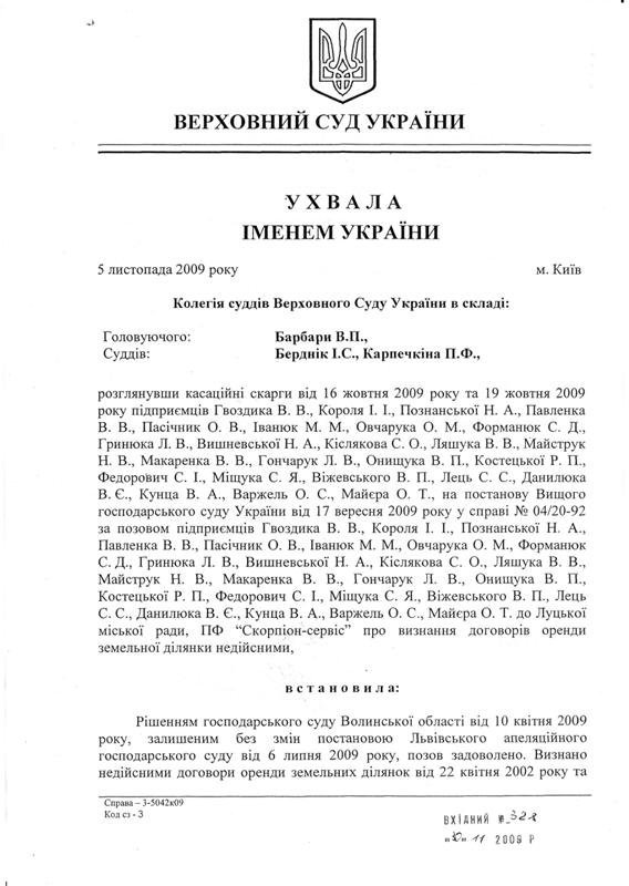 Найвища судова інстанція України визнала правоту фірми «Скорпіон-сервіс», відхиливши претензії Луцької міської ради та торговців. Колишні власники торгових точок, природно, невдоволені рішенням.