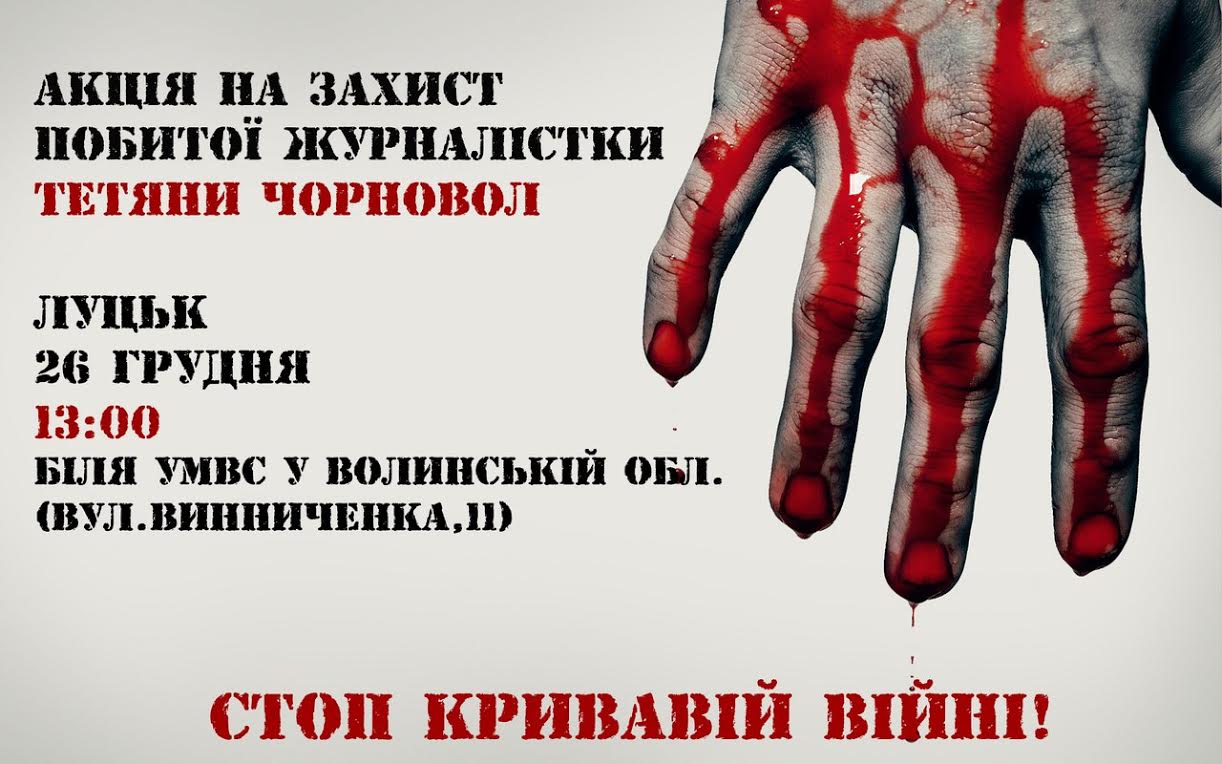СТОП - кривавій війні! Саме із таким лозунгом у четвер, 26 грудня, вийдуть лучани та гості міста на захист побитої журналістки Тетяни Чорновол.