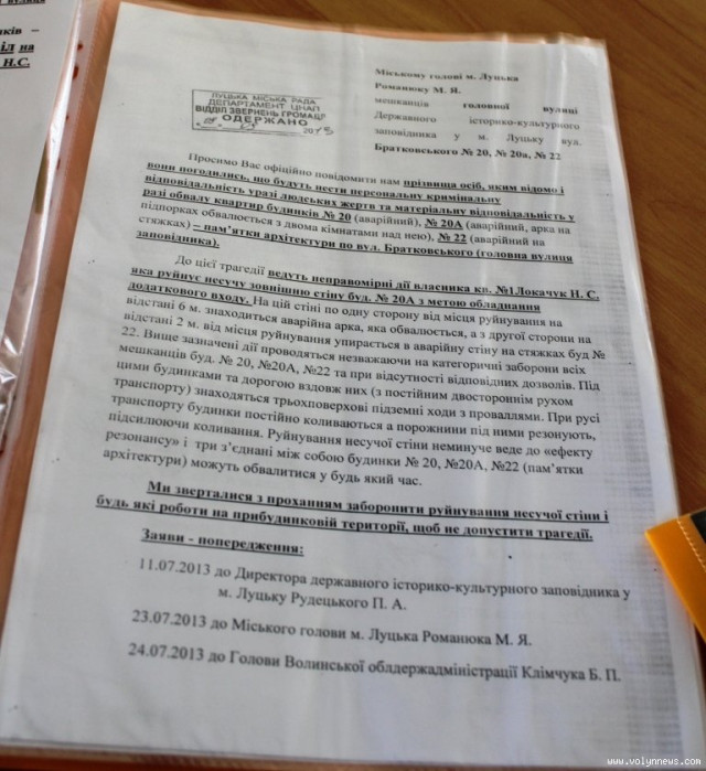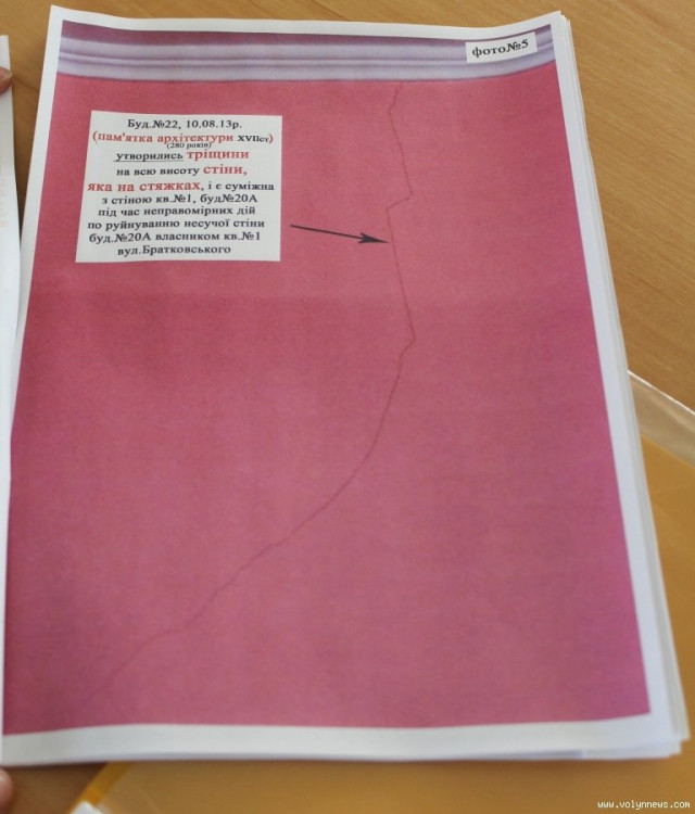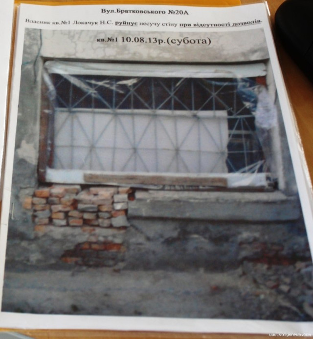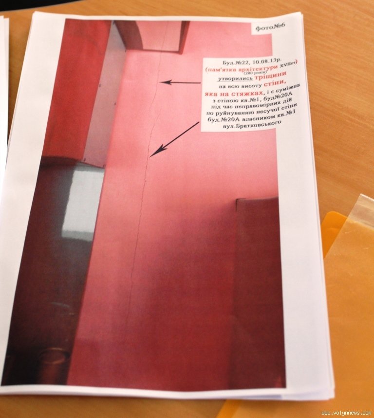 Як зазначила Валентина Вдовиченко, мешканці будинків не просять у міської влади жодних коштів, а лише прагнуть заборонити знищення будинків у Старому місті – туристичній візитівці Луцька. Мешканці вулиці Братковського підготували для міського голови фотоматеріали, які засвідчують те, як збільшилися тріщини у будинках після спроб самовільного перепланування.