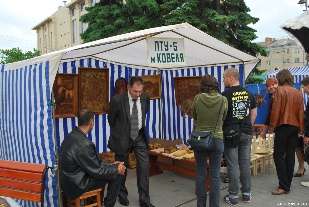 «Ми представляємо ПТУ №5 міста Ковеля та презентуємо широкий асортимент різьбярських робіт, а також приймаємо замовлення для населення. Щороку ми намагаємося поновити асортимент виробів, ми можемо конкурувати з іншими колективами. На мою думку, наша продукція має попит, тому що ми щороку беремо участь у ярмарку, і в основному реалізовуємо продукцію», - розповів старший майстер Микола Мороз.