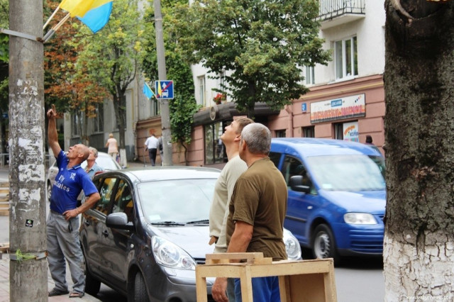 а от, не доведи Боже, комусь та машинерія впаде на голову чи машина зіб'є перехожого, який з дитиною буде обходити того крана, то як думаєте? Хто буде винен? Отоді всі задумаються чому про безпеку людей в центрі міста не подбали. Я собі такого ставлення до перехожих у Європі ніколи не бачив. Там би все акуратно огородили, знаки б поставили. А тут, жаліють пару гривень, щоб людям забезпечити нормальне пересування вулицями.