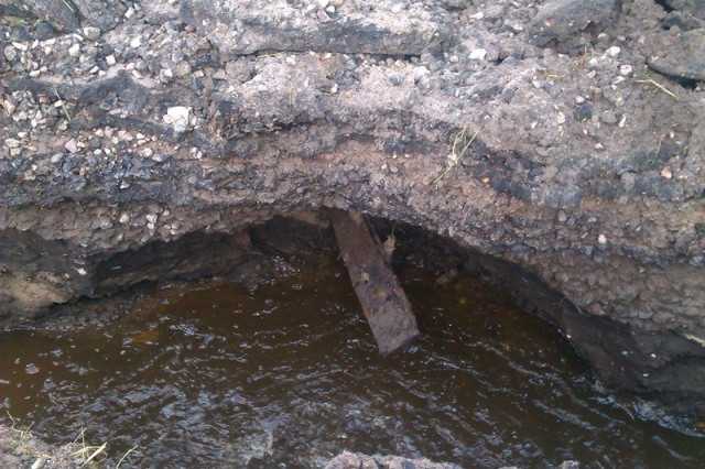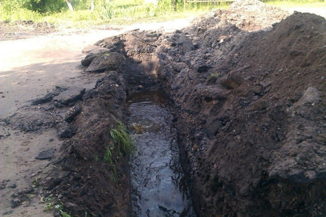 Так, глибоку траншею викопали по вулиці 1 Травня, біля автостанції. Причиною цьому став затор водогінної мережі, що знаходиться під асфальтним покриттям. Аби прочистити трубу, верхній шар дороги зняли і частину траншеї викопали комунальним трактором.