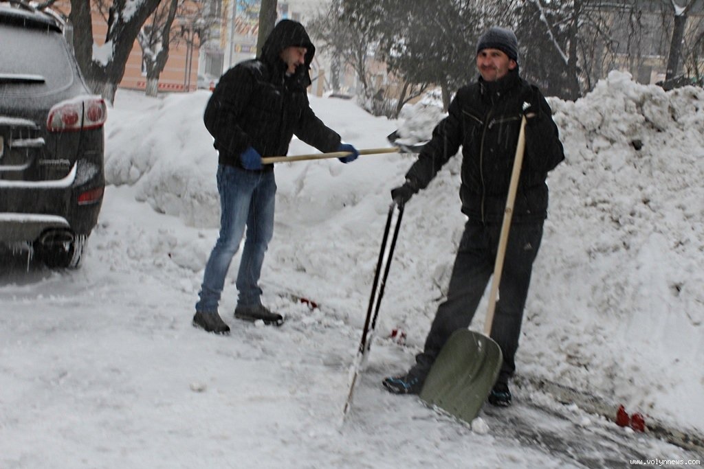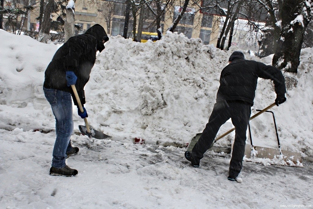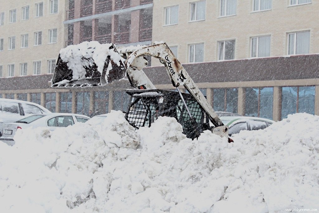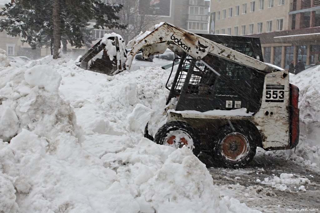 Грейдерами та лопатами розчищають сніг у центрі Луцька.