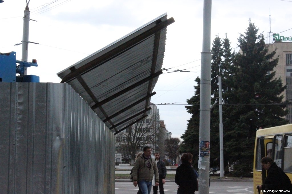 картина жахлива зверху згорілого цуму летять бетонні злитки кран працює над головами людей і над дахами підїзджаючих маршруток і нікому немає діла про яку техніку безпеки можна говорити влада не бачить і не чує і начхала на людей терміново необхідно тимчасово перенести зупинку вперед до будівель що за цумом