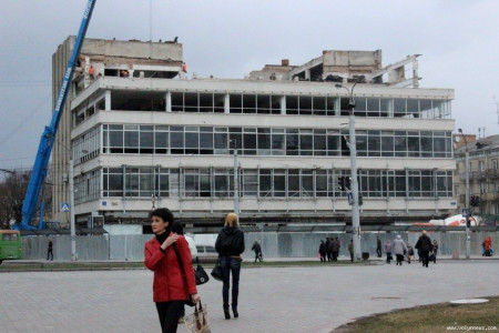 Демонтажні роботи на приміщенні ЦУМу завершаться 1 квітня. Після цього будівельники візьмуться за зведення нової будівлі.
