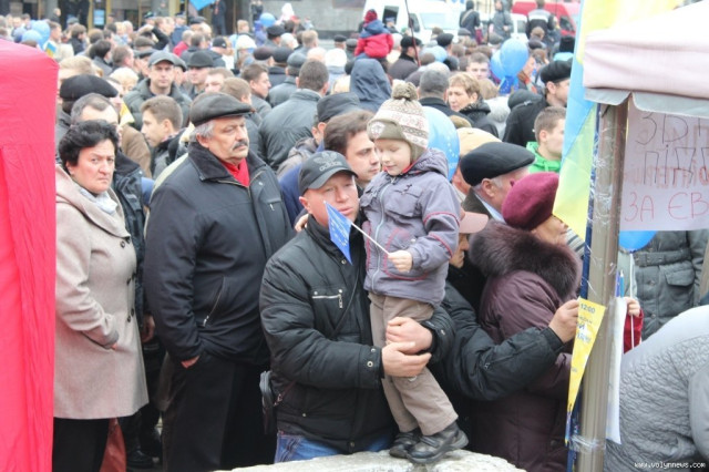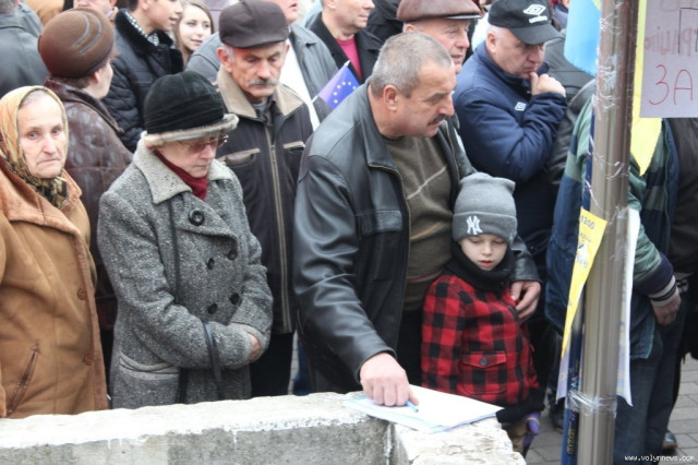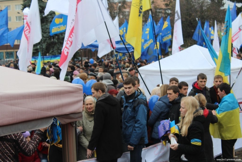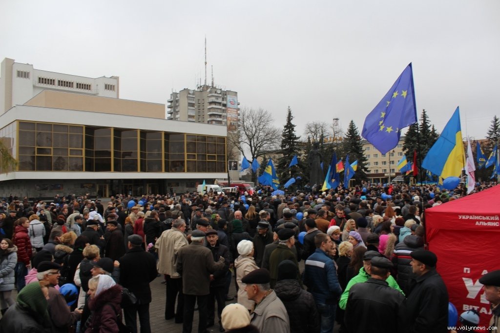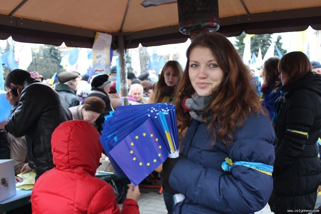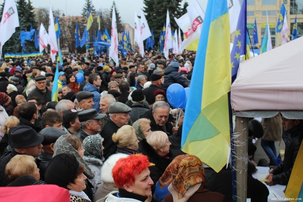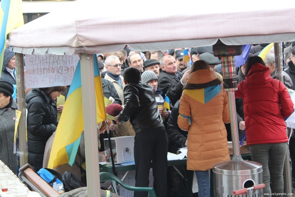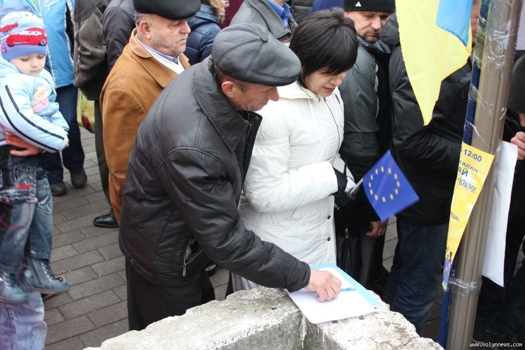 Під час мітингу за євроінтеграцію, що відбувся 24 листопада, велика кількість лучан зібралася поблизу намету, у якому збирали підписи на підтримку євроінтеграції. Зголошувалася як молодь, так і представники поважного віку.