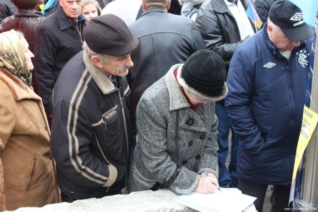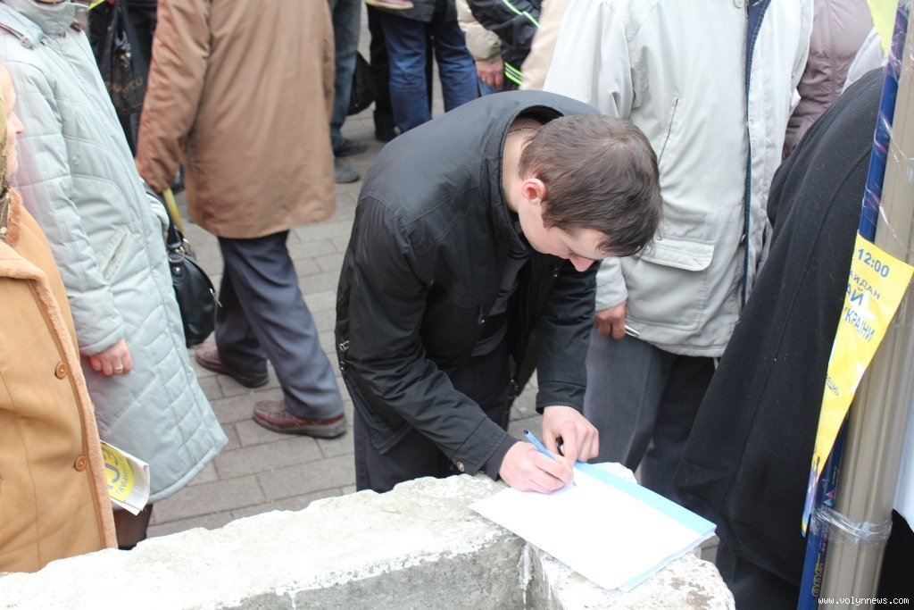 «Я вирішив поставити цей підпис за своє майбутнє і за нащадків. Митний союз – виключений варіант, оскільки це навіть символічно, що напередодні роковин Голодомору Янукович прийняв рішення відмовитися від євроінтеграції і піти у Митний союз, тобто в обійми «братньої» Росії, яка винищила десятки мільйонів українців протягом якихось 90 років. Після цього і надалі йти в Росію, на мою думку та на думку багатьох українців, які вийшли на майдани у Луцьку та у Києві, безглузде рішення», - розповів Волинським Новинам лучанин Ростислав.