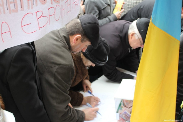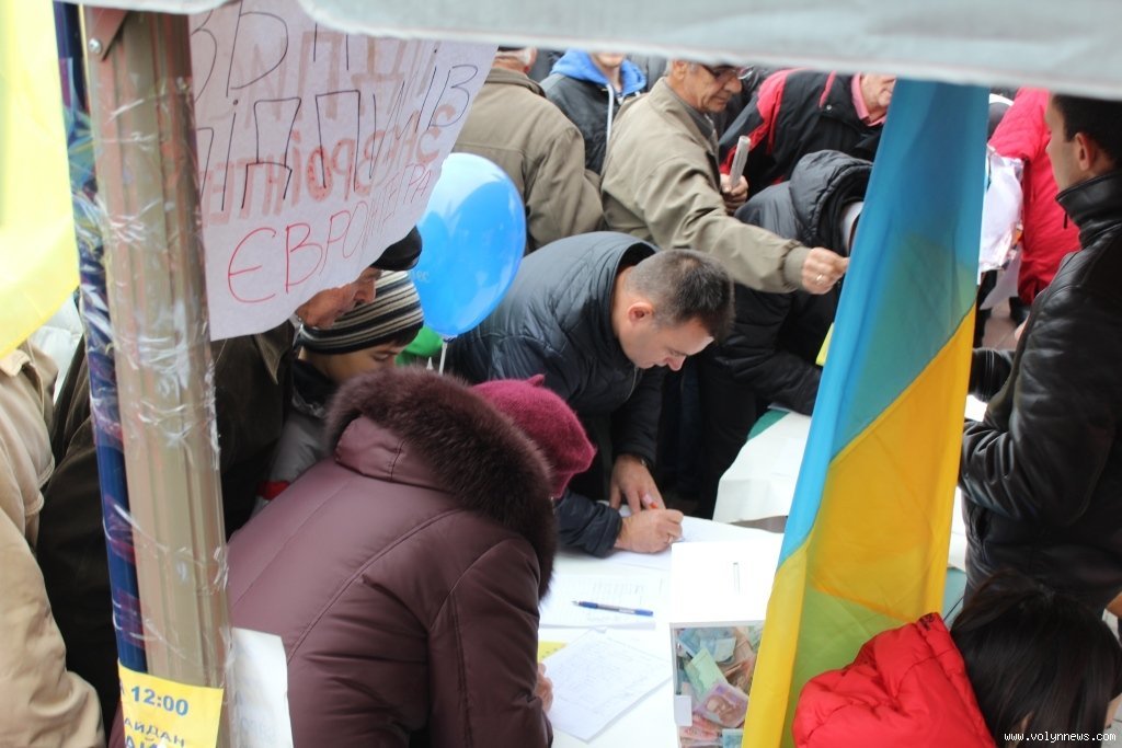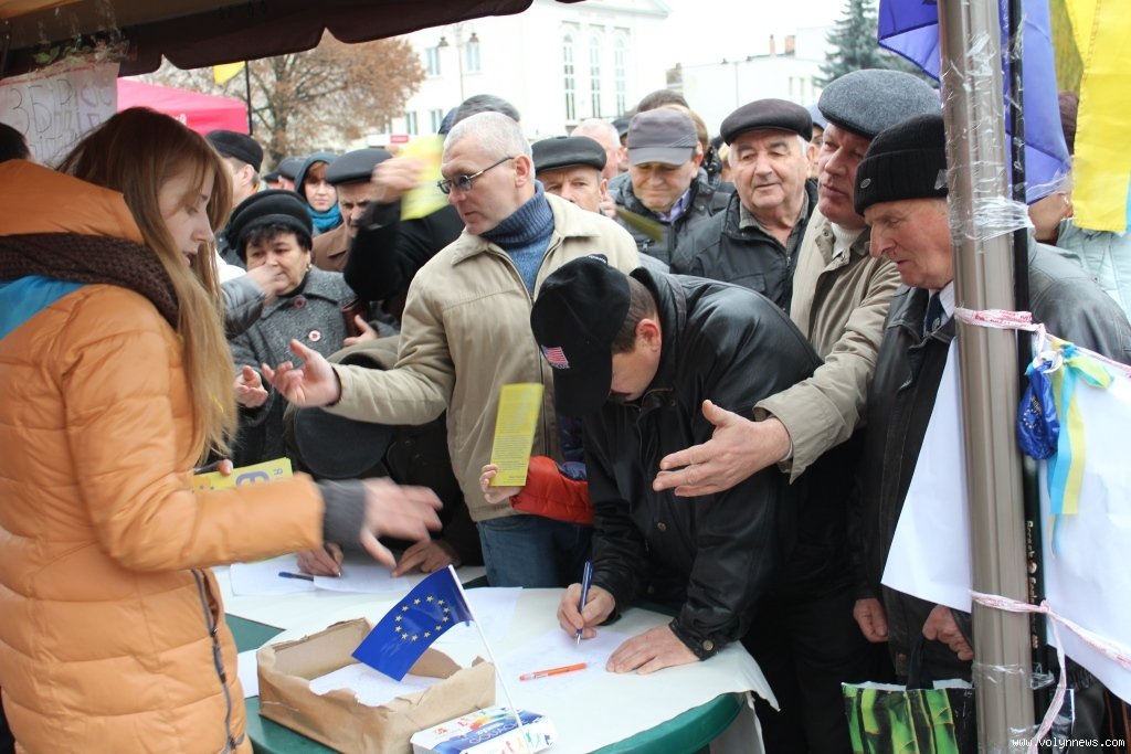 Приблизно чотири тисячі підписів на підтримку європейського курсу України зібрали активісти наметового містечка, що на Театральному майдані у Луцьку.