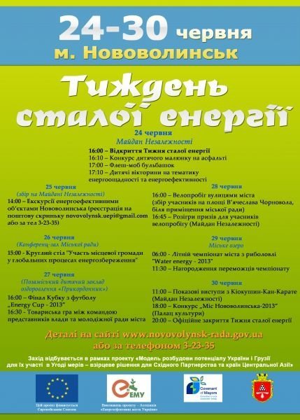 Тиждень сталої енергії - у Нововолинську. ПРОГРАМА