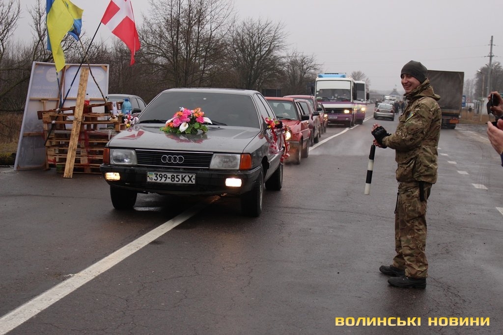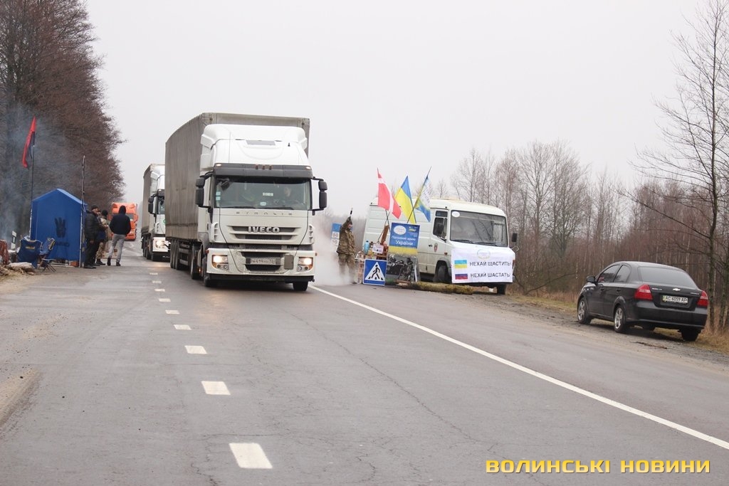 Так, близько 22 години 13 лютого з української території виїхала перша фура у зворотньому напрямку. Однак, близько 20 інших вантажівок залишались на попередньому місці стоянки – перед блокпостом, створеним активістами раніше.Утім, з 14 лютого, активісти попереджували усіх учасників великогабаритних автомобілів про те, що, починаючи із 18 години сьогоднішнього дня не пропускатимуть не лише транспортні засоби із номерними знаками Російської Федерації, а й жодного вантажу, у накладній якого буде зазначено, що його переправляють із Росії.Нагадаємо, 13 лютого 2015 року голова Волинської ОДА Володимир Гунчик дав вказівку зняти блокпости активістів, мовляв, функцію перевірки та затримання транспортних засобів можуть виконувати прикордонники та митникам. Ймовірно, у зв’язку із цим цього ж дня на місце події прибув виконувач обов’язків очільника Волинської національної поліції Петро Шпига, який намагався переконати активістів дослухатися до розпорядження губернатора. Разом із тим він звернувся до учасників блокади із проханням розблокувати виїзд російських вантажівок із території України.