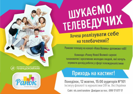 «Шукаємо телеведучих! Хочеш реалізувати себе на телебаченні? Ранкове телешоу на каналі “Нова Волинь” допоможе тобі!
