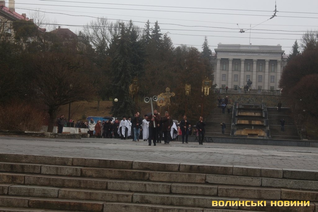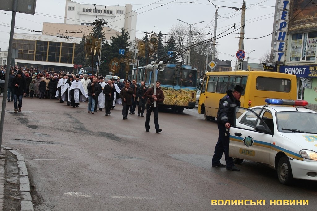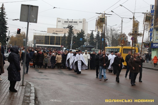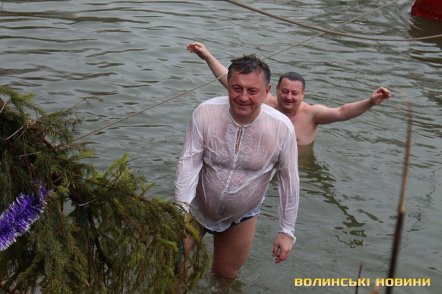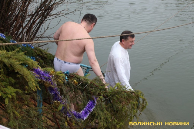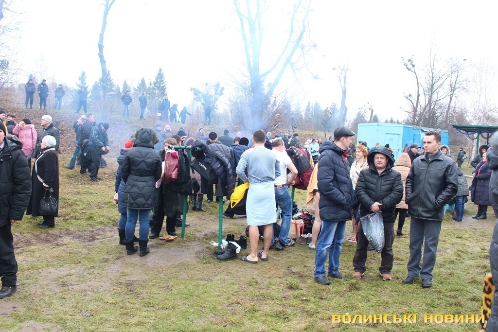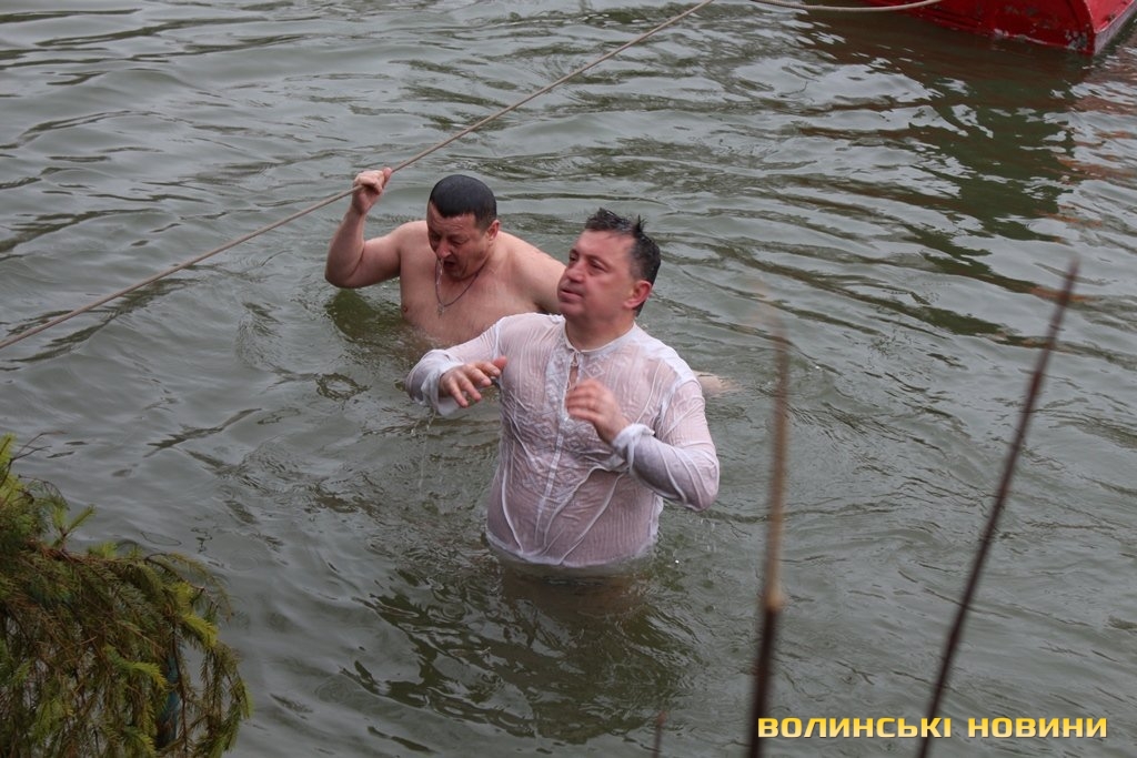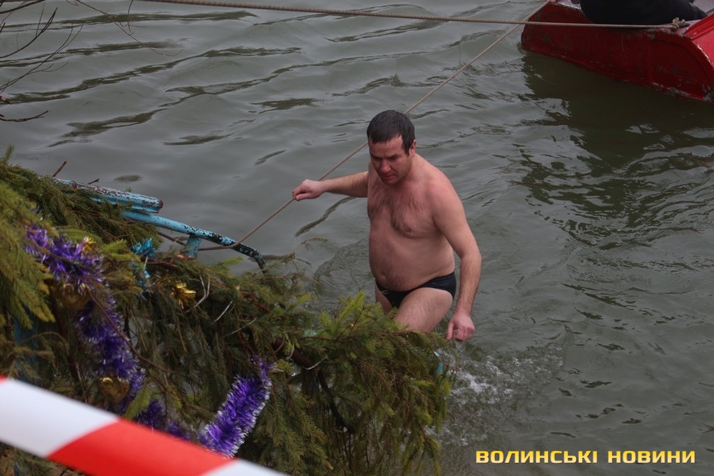 Дійство розпочалось із хресної ходи, яка близько 12:30 рушила від кафедрального собору Святої Трійці до місця освяти – на пляжі Центрального парку імені Лесі Українки.Після урочистої ходи владика Луцький та Волинський Михаїл освятив води річки Стир. До слова, аби усе проходило безпечно та без ризику, біля водойми чергувало 11 рятувальників.Першими після освячення у холодну воду пірнули перший заступник голови Волинської обласної ради Олександр Пирожик та депутат Луцькради Богдан Шиба.