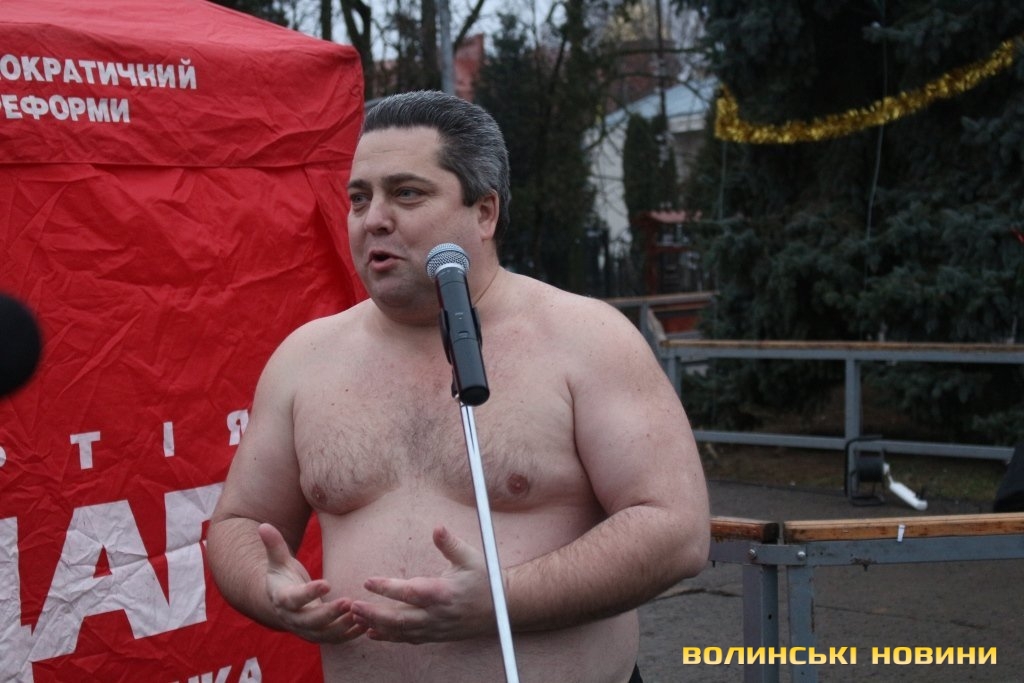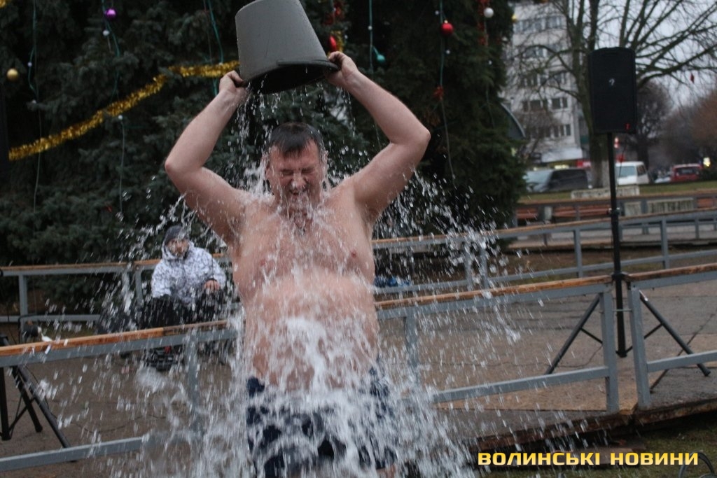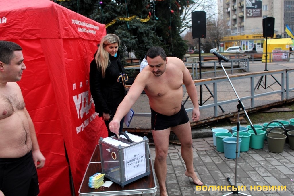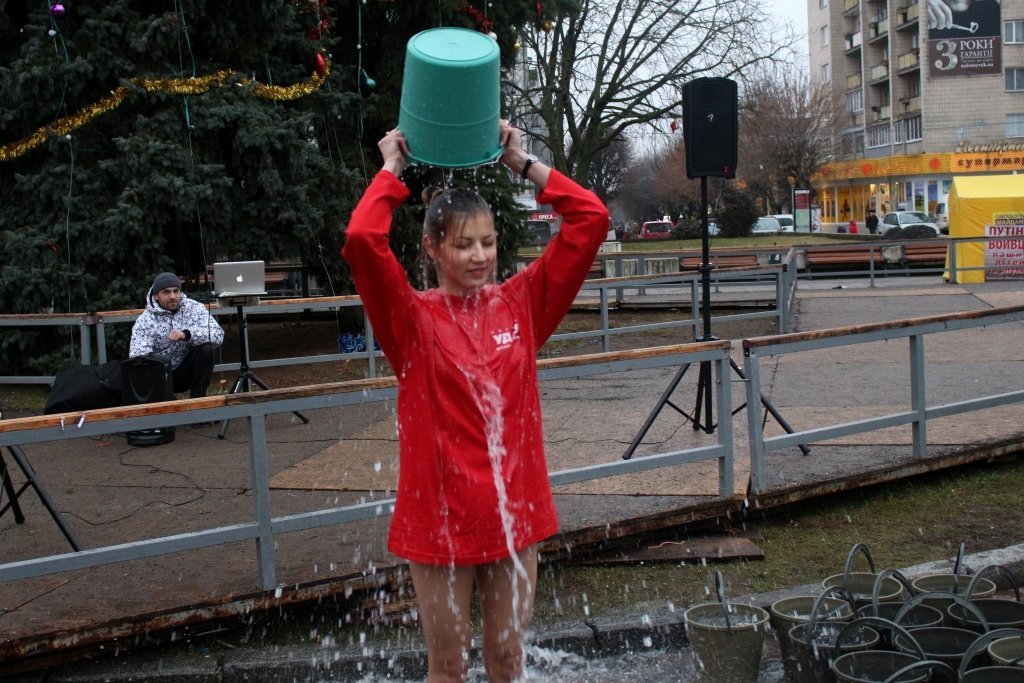 Облитися холодною водою просто неба у центрі Луцька та пожертвувати кошти на потреби учасників АТО пропонували усім охочим.