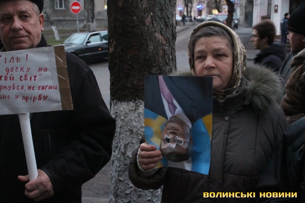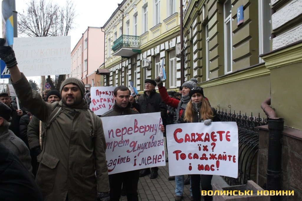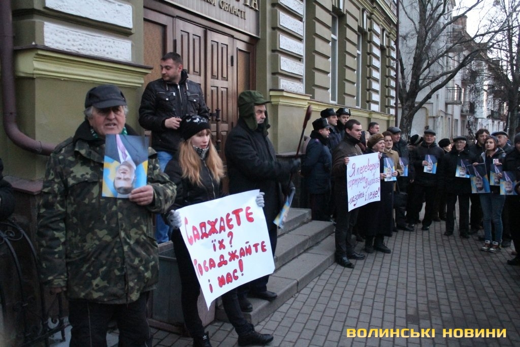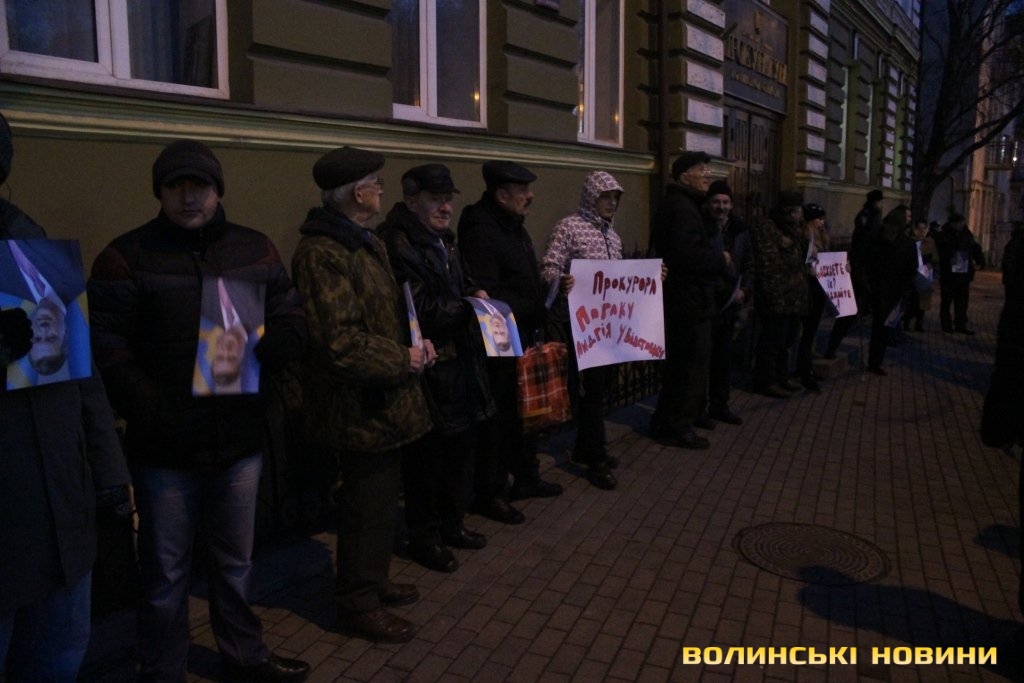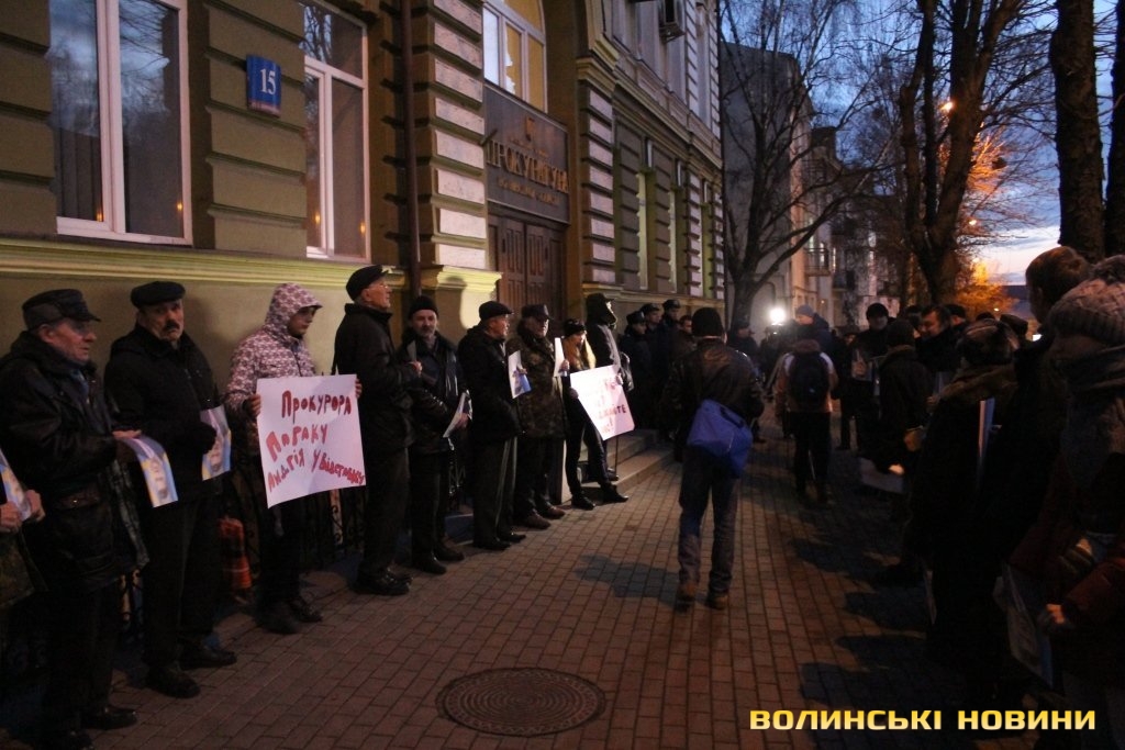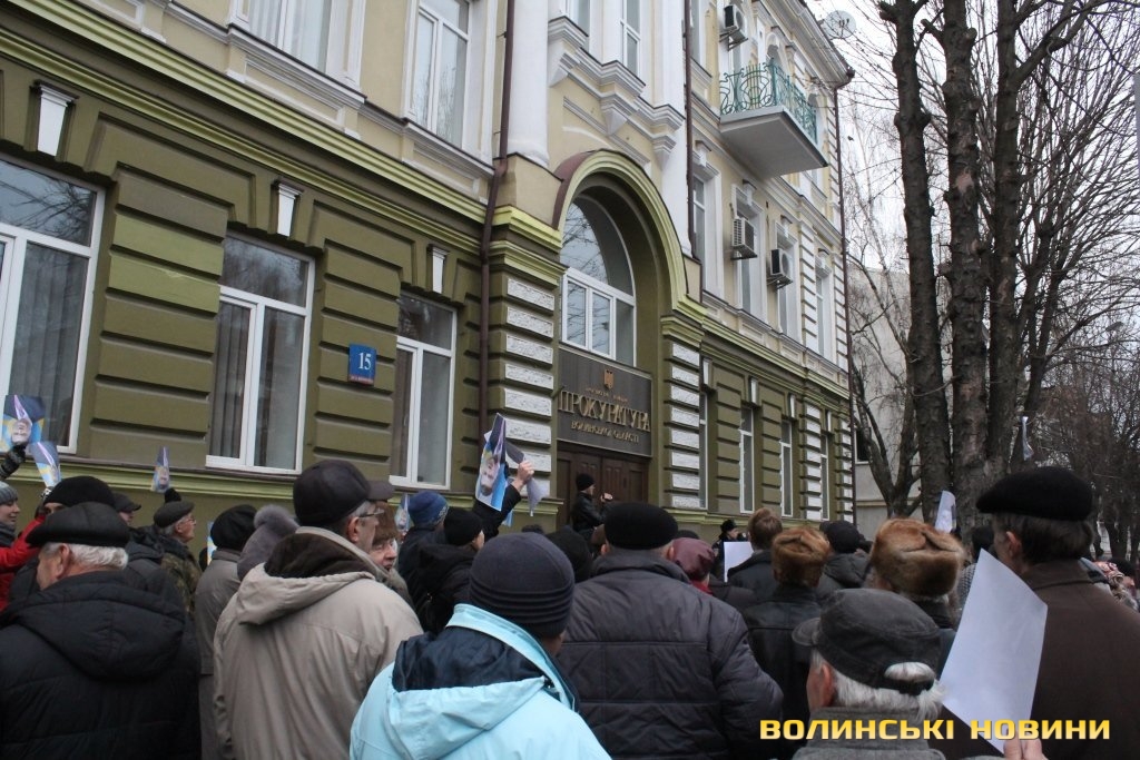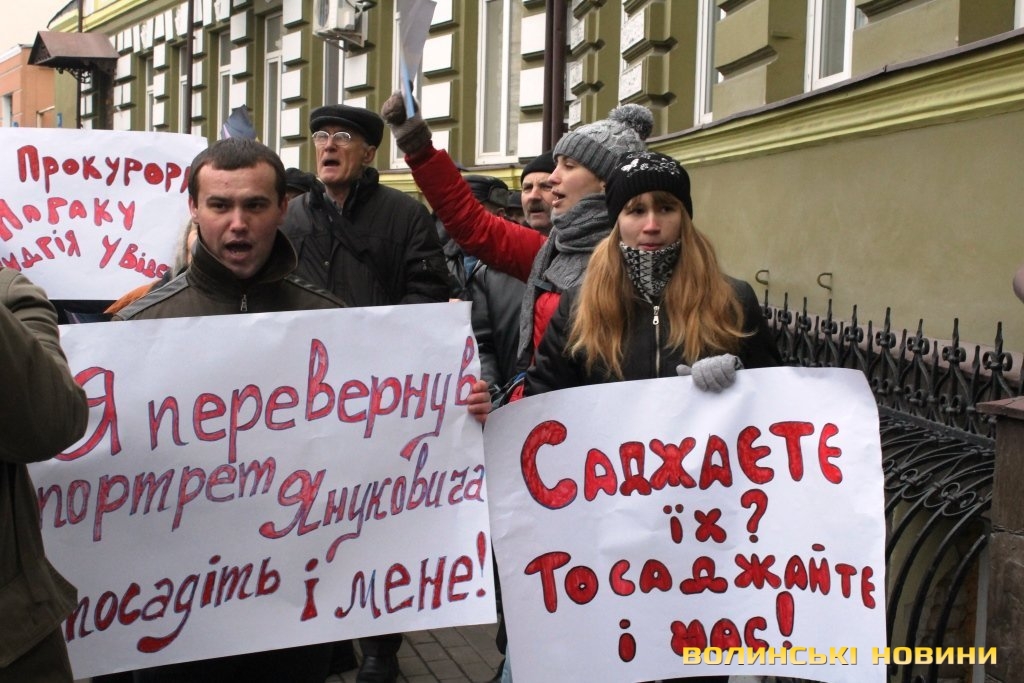 Десятки лучан пікетували будівлю прокуратури Волинської області та міста Луцька на знак протесту проти політичних репресій на Волині. Акція розпочалася о 7.30 23 грудня. Поблизу парадного входу у будівлю мітингувальники зібралися з перевернутими портретами Януковича та банерами з гаслами.