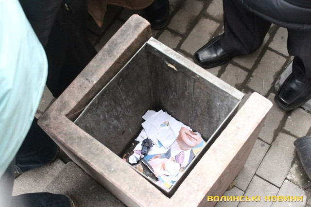 «Ми вважаємо, що сьогодні розпочинається 37-й рік, сталінські репресії, їх організовує прокурор області Парака. Ми вимагаємо його відставки, кожен, хто сьогодні перевернув такий портрет вважає, що його також, як і десятки мільйонів українців, які вважають, що це не наш президент, треба посадити. Янукович сьогодні віддає накази бити до крові молодь, студентів, тому ми хочемо привернути увагу громади до того, що Волинь сьогодні №1 за репресіями. Немає іншої області в Україні, де відкрито шість кримінальних справ. Ми хочемо, щоб Парака сьогодні розпочав робочий день з розумінням того, що люди не сплять, що вони реагують на ситуацію та будуть протестувати», - розповів депутат.