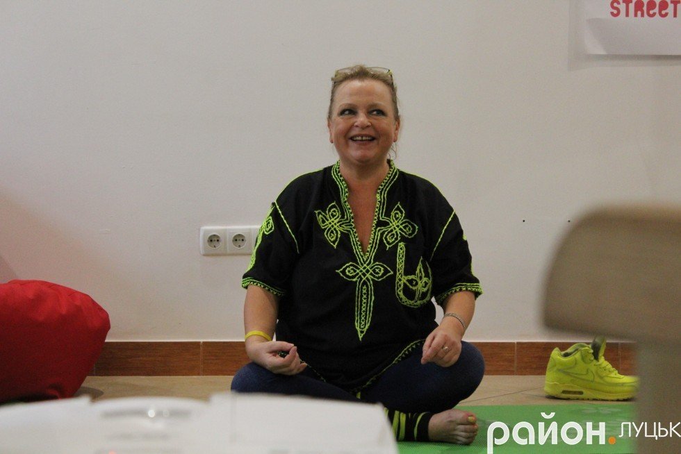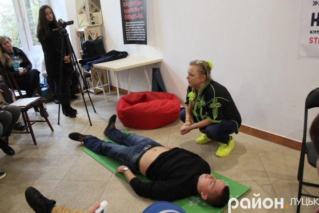 Натішившись «себеньками», гості перейшли до перегляду фільму про Анну Лев. Після цього актриса провела майстер-клас «Академія голосу», де розповідала секрети акторської майстерності та показувала дихальні вправи.