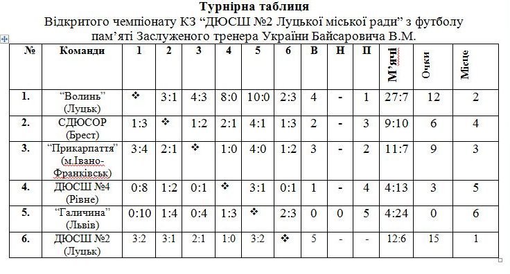 Відкритий Чемпіонат КЗ “ДЮСШ №2 Луцької міської ради” з футболу, присвяченого пам’яті старшого тренера-викладача з футболу Байсаровича Володимира Миколайовича відбувся у Луцьку.
