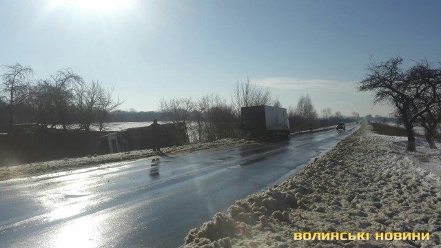 Нагадаємо, що сьогодні, 15 листопада, на трасі Луцьк-Львів через слизьку дорогу перекинулась вантажівка.