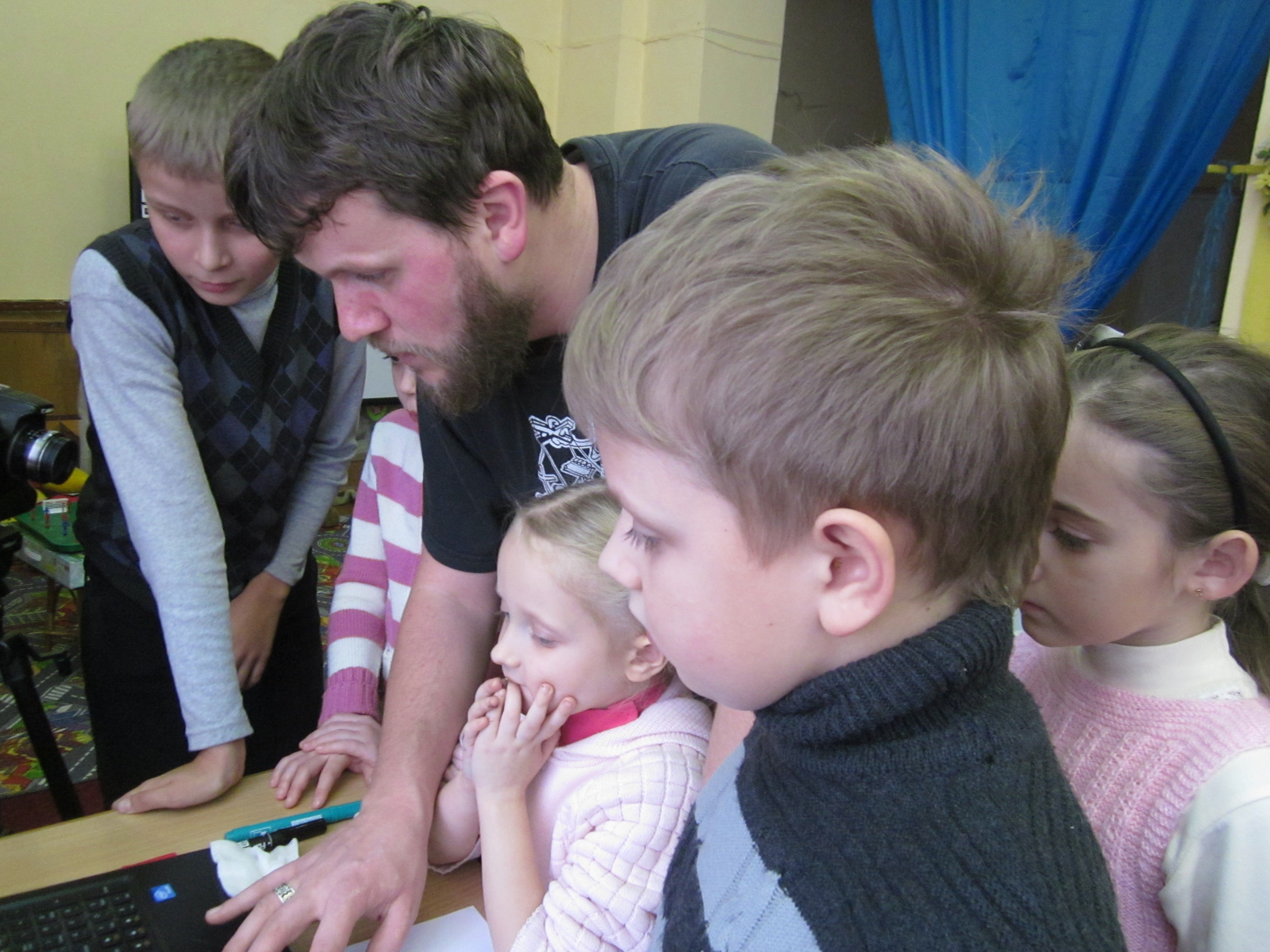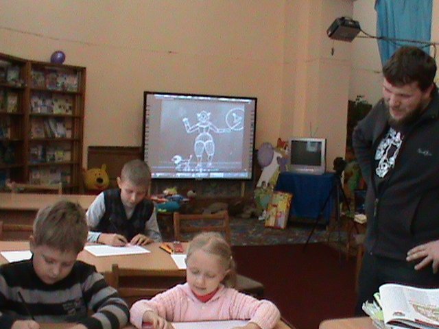Діти несміло переступили поріг бібліотеки, і з такою ж несміливістю поринули у невідомий, ще для них, світ дитячого мультиплікаційного кіно. Перші малюнки про свою сім’ю лягли не чисті аркуши паперу, але згодом вони обов’язково почнуть рухатись і розмовляти. Діти, які завітали на заняття, були різного віку від маленької Варвари, якій лише 5 років, до серйозного одинадцятилітнього Ореста, але це аж ніяк не заважало їм знайти спільні теми про дитячі мрії і бажання, бо всіх об’єднує дитинство.