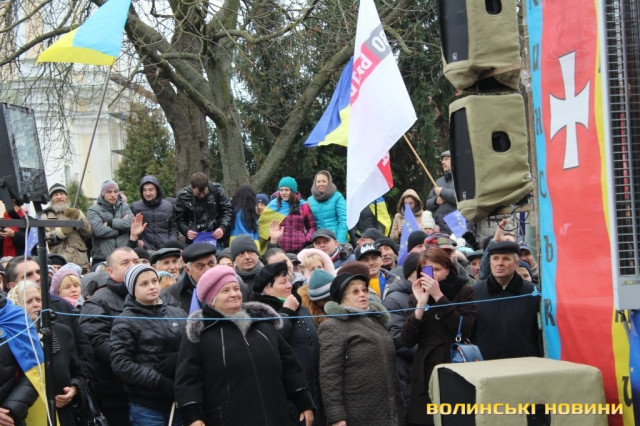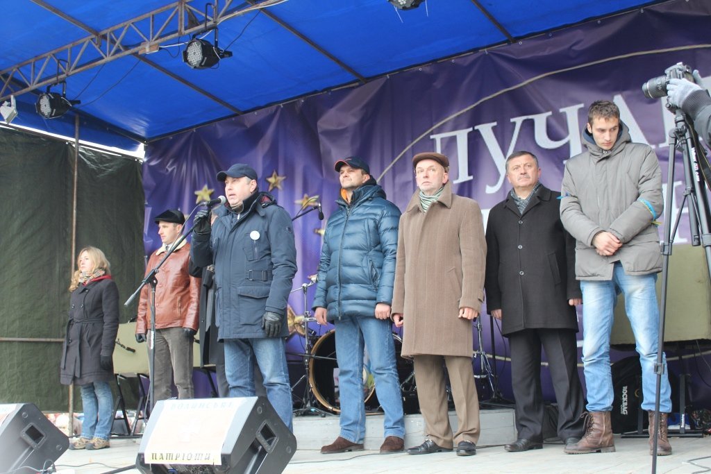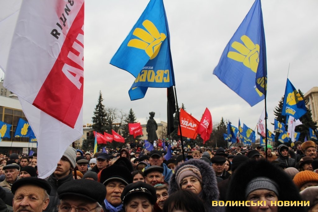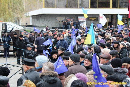 Під час Народного віча, що відбулося на Театральному майдані у Луцьку 1 грудня, координатори луцького Євромайдану закликали усіх присутніх виносити портрети Президента з державних установ.