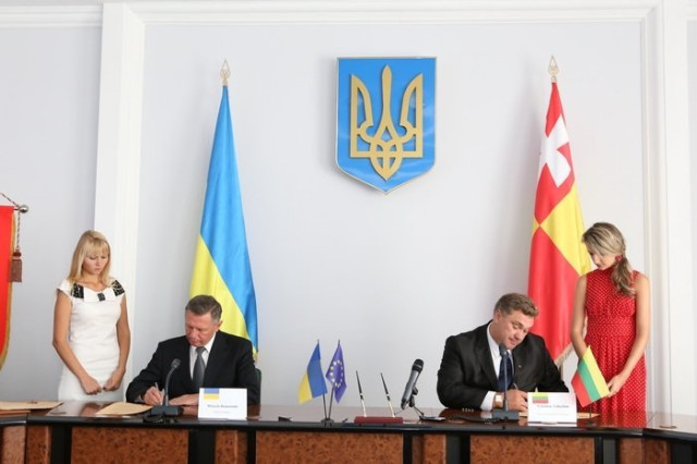 Луцький міський голова, Президент Асоціації «Шлях Гедиміновичів» Микола Романюк та заступник директора адміністрації міста Каунас Степонас Ваічікаускас (Литовська Республіка).