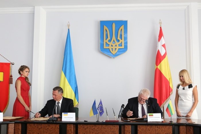 Луцький міський голова, Президент Асоціації «Шлях Гедиміновичів» Микола Романюк та заступник директора адміністрації міста Каунас Степонас Ваічікаускас (Литовська Республіка).