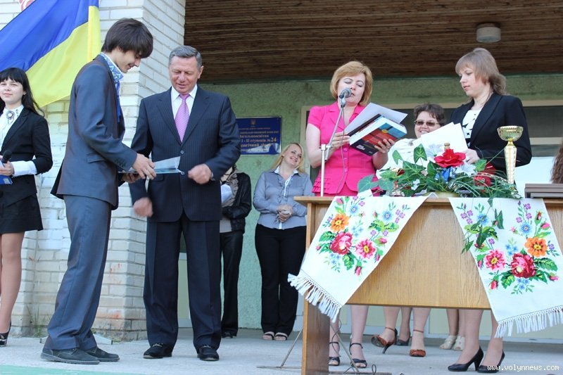 Під час дійства міський голова Луцька Микола Романюк побажав дітям гарного відпочинку влітку, а дев’ятикласникам - успішного вибору професії та вдалого вступу. «Вчителям бажаю трішки відпочити від дітей», - жартома додав мер.