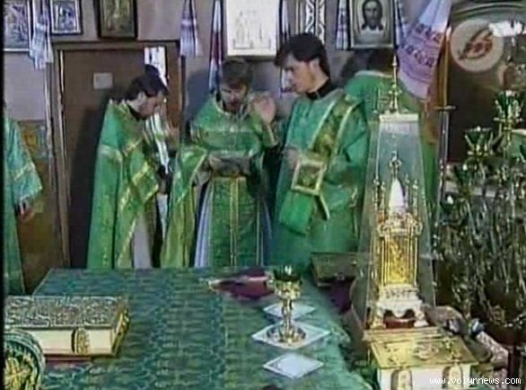 Після цього розпочалася, власне, божественна літургія. Під час неї протоієрей Валентин Марчук зауважив, що владика Ніфонт, який наразі знаходиться у лікарні, також просив вітати вірян з Днем Святої Трійці. Опісля цих слів усі присутні у храмі помолилися за церкву та здоров’я митрополита Ніфонта.