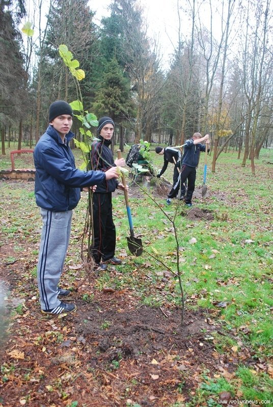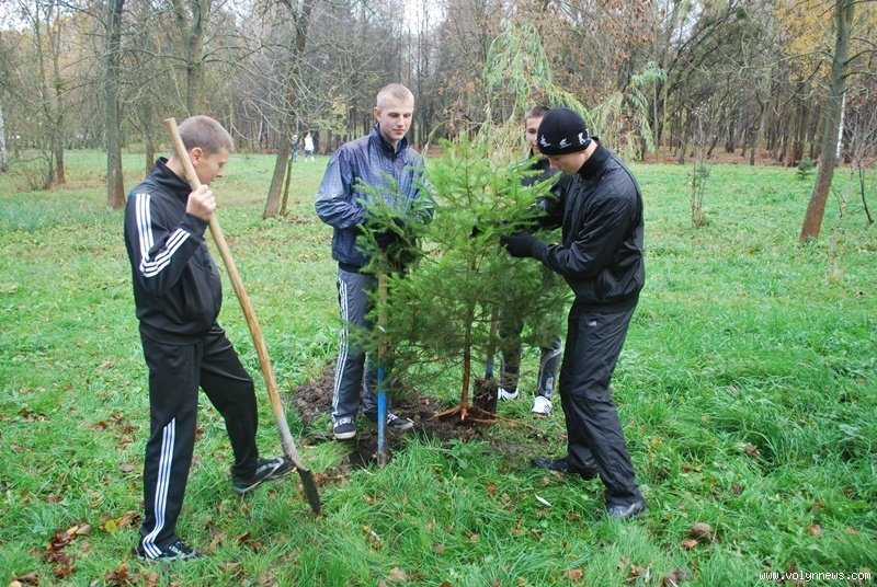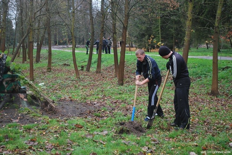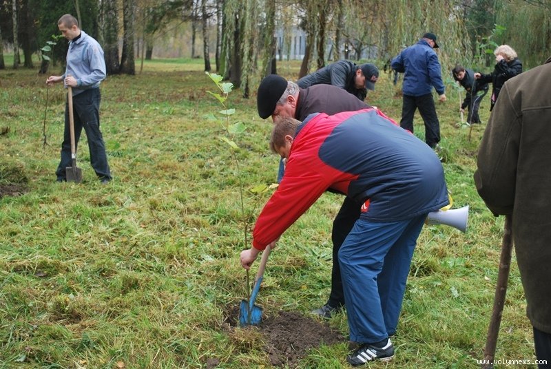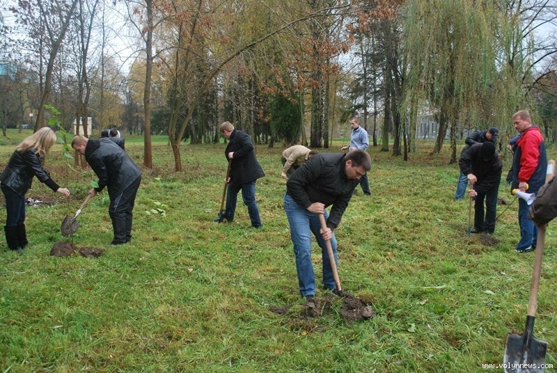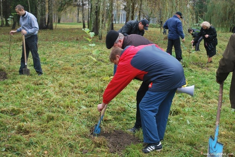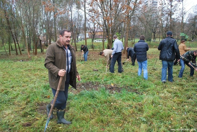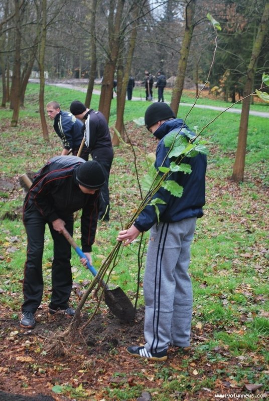 Представники Луцької міськради на чолі із Луцьким міським головою Миколою Романюком, працівники комунальних підприємств міста, вихованці Волинського військового ліцею та Луцького педагогічного коледжу долучилися до акції з озеленення території центрального міського парку.
