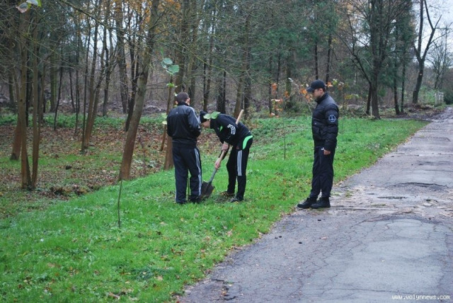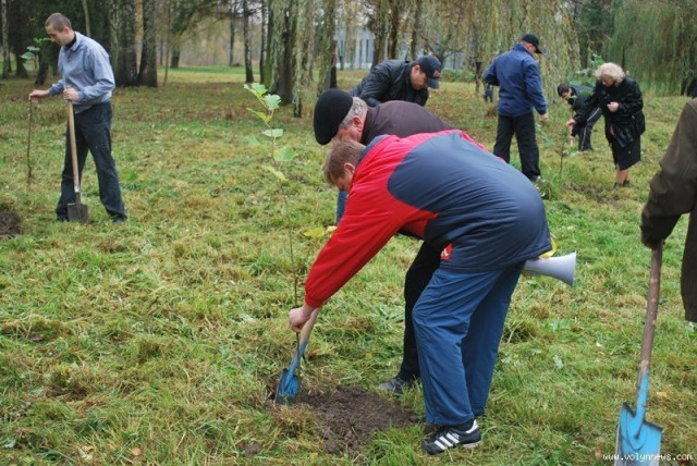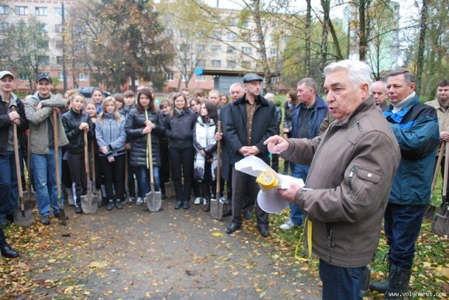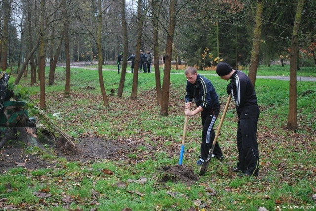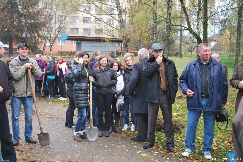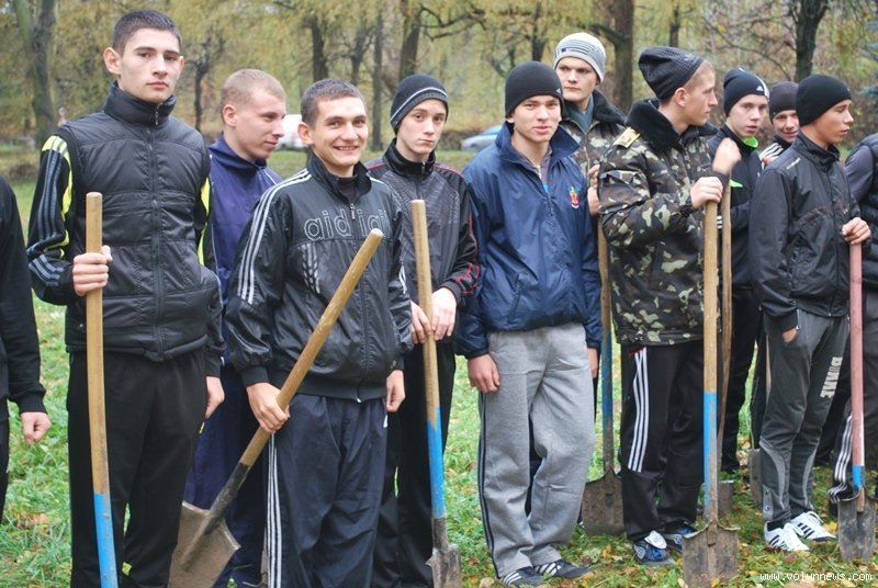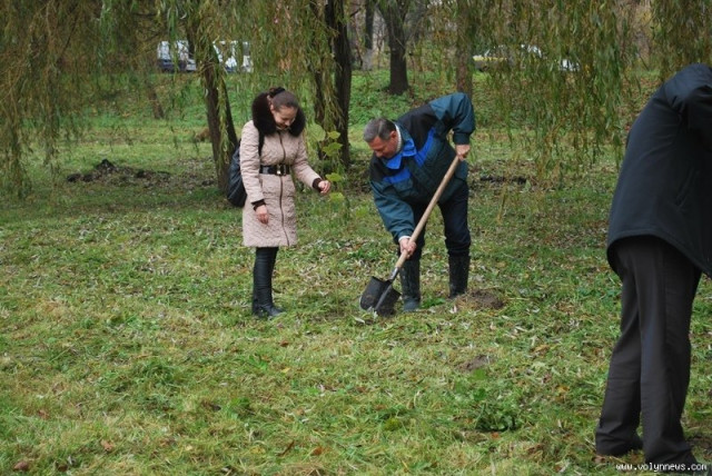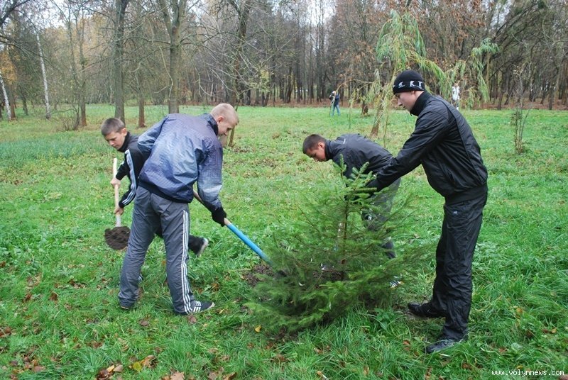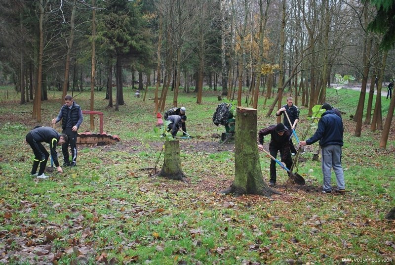 Представники Луцької міськради на чолі із Луцьким міським головою Миколою Романюком, працівники комунальних підприємств міста, вихованці Волинського військового ліцею та Луцького педагогічного коледжу долучилися до акції з озеленення території центрального міського парку.