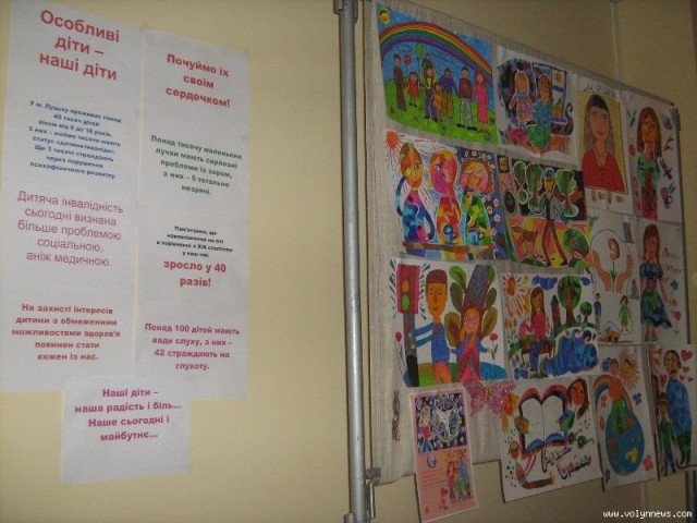 Виставка презентує роботи Волинського центру соціальної реабілітації дітей-інвалідів Міністерства праці та соціальної політики, малюнки дітей дитячих садочків Луцька, вихованців НВО «ДНЗ № 28 – спецшкола для дітей з вадами слуху», а також учнів молодшої групи Луцької художньої школи (викладач – Ольга Кучма), - інформують у департаменті інформаційної політики Луцької міської ради.