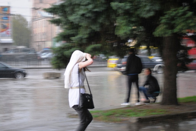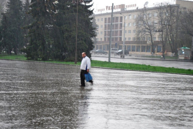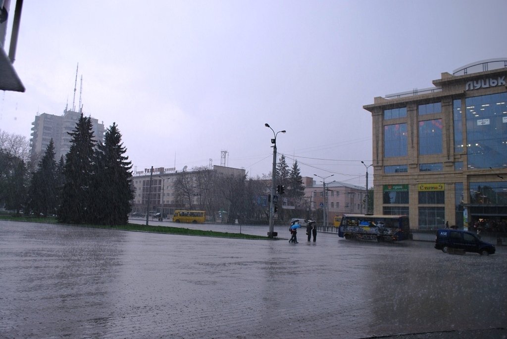Температура повітря дещо знизилась, а з неба протягом хвилин 10 лилась вода.