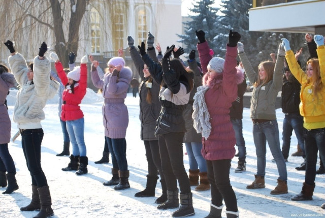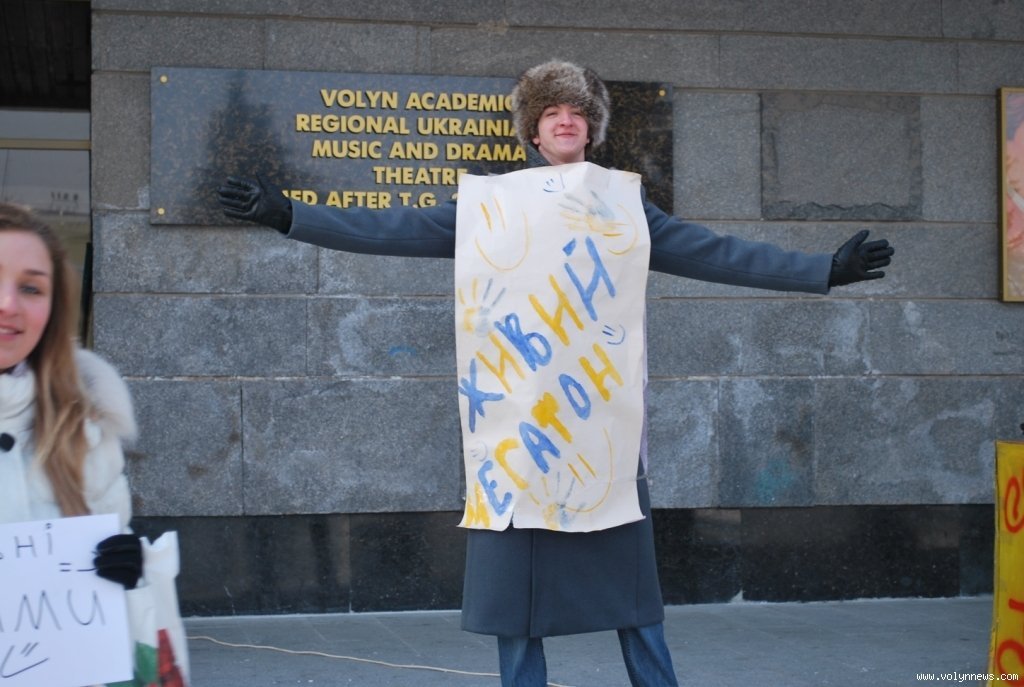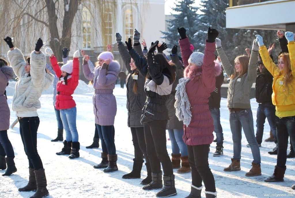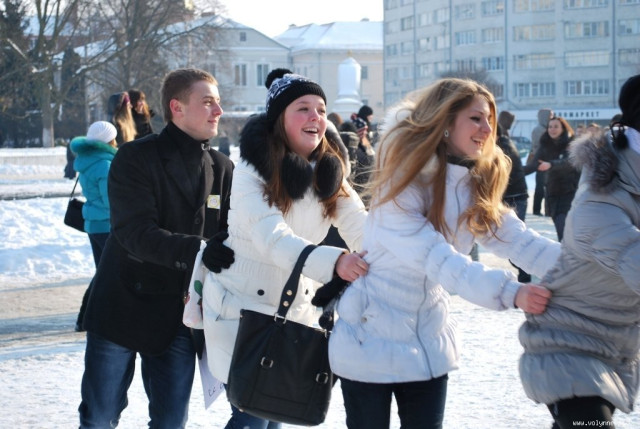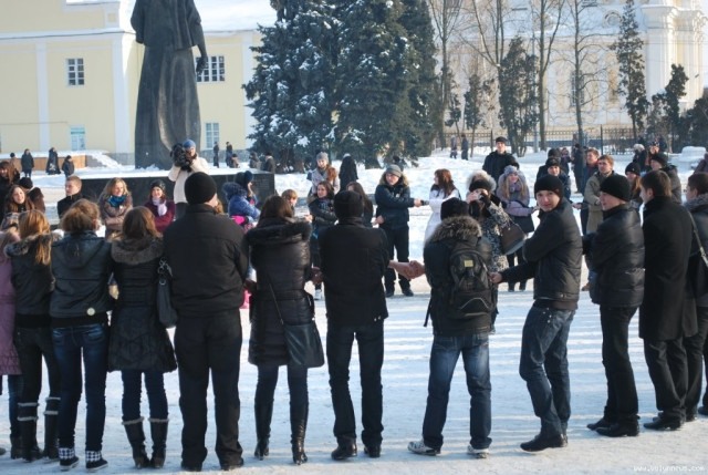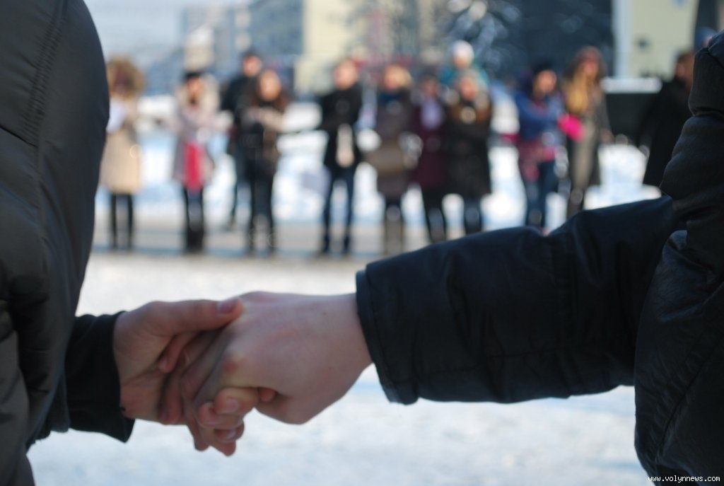 Кілька десятків молодих людей зібралися у центрі Луцька, аби «поширювати вірус доброти».