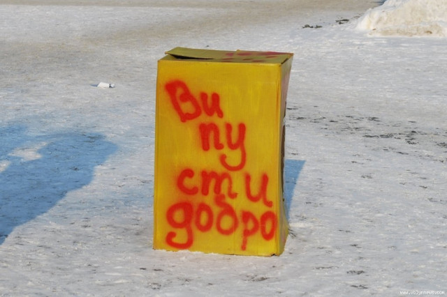 Опісля випадкова перехожа відчинила скриню, з якої вилетіли кульки з написом «Добро».