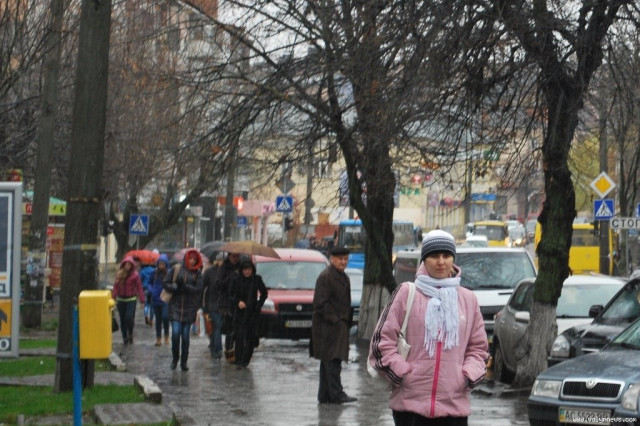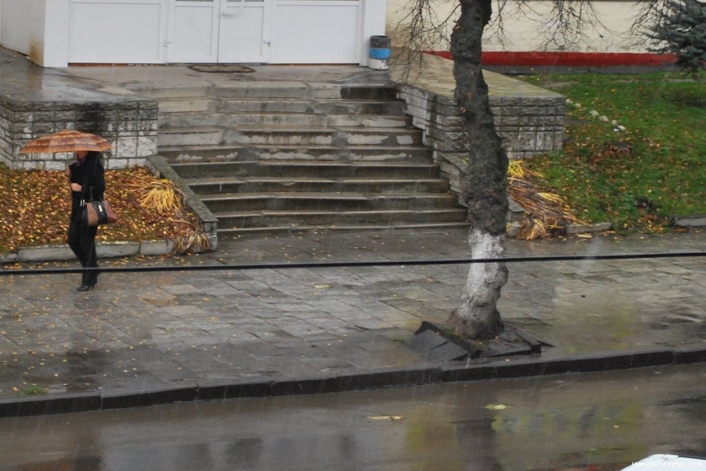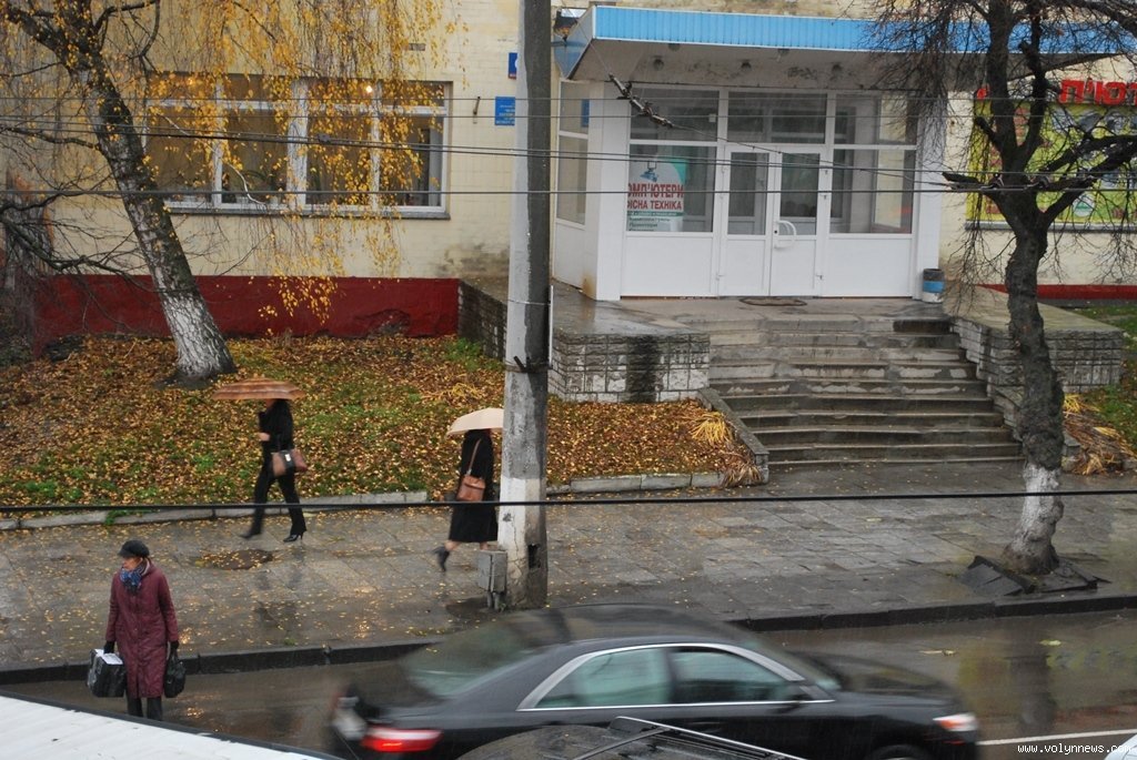 Перший мокрий сніг розпочався у Луцьку. З неба, затягнутого сірими хмарами, на вулиці міста та перехожих падають мокрі сніжинки, які підганяє холодний вітер.
