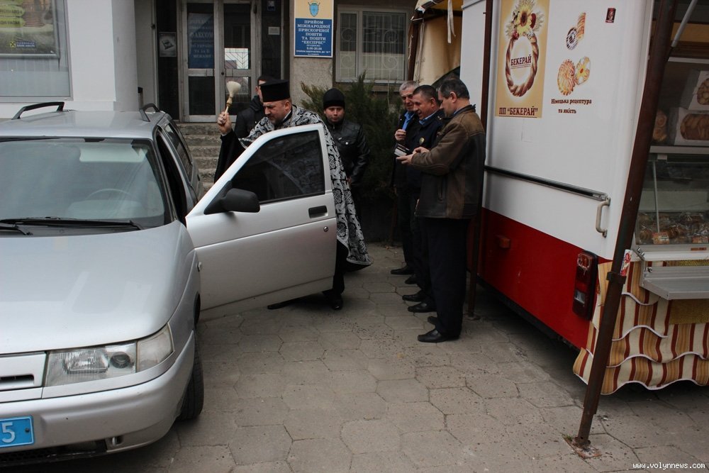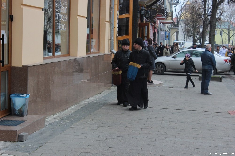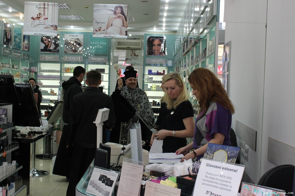 Два священики кропили святою водою усі заклади та установи, які розташовані на вулиці Лесі Українки. Ще двоє священнослужителів збирали благодійної пожертви.