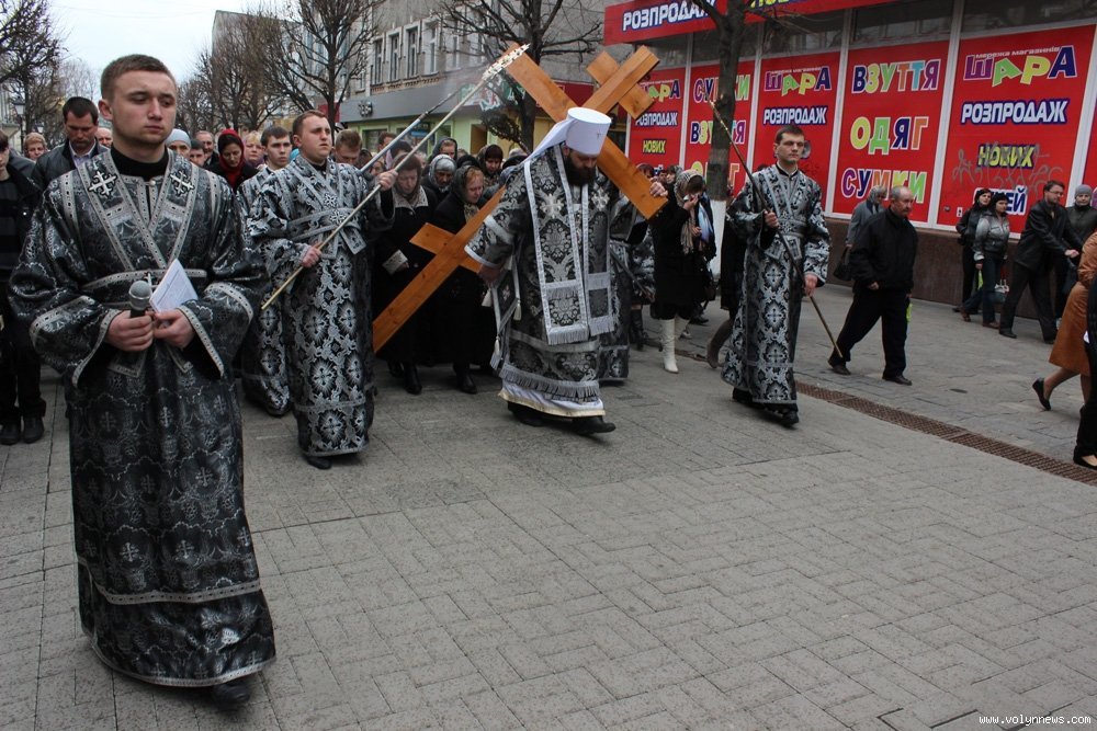 В останню п’ятницю перед Великоднем Луцьком пройшла Страсна хресна хода. Її очолив митрополит Луцький і Волинський УПЦ КП Михаїл.