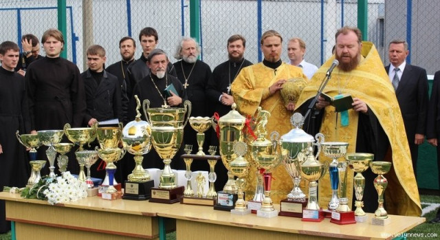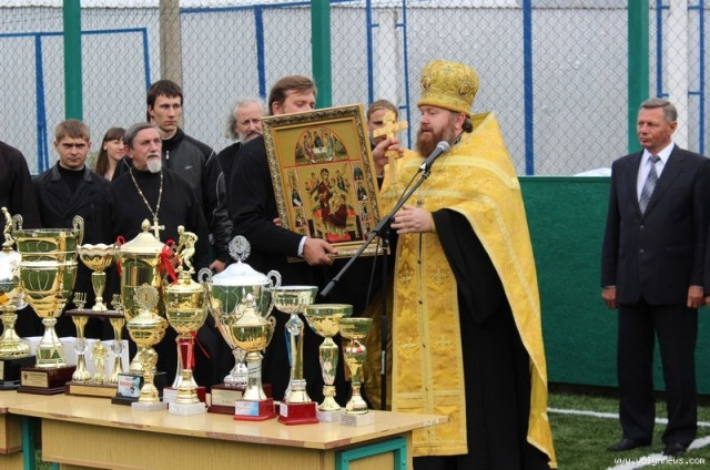 Також на відкриття завітали священнослужителі УПЦ МП, які освятили футбольну споруду та подарували юним футболістам та їх наставникам ікону Пресвятої Богородиці.